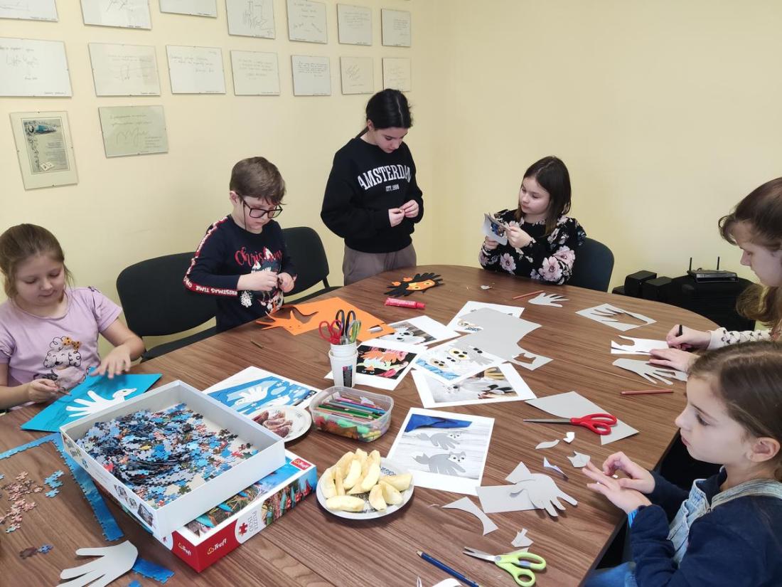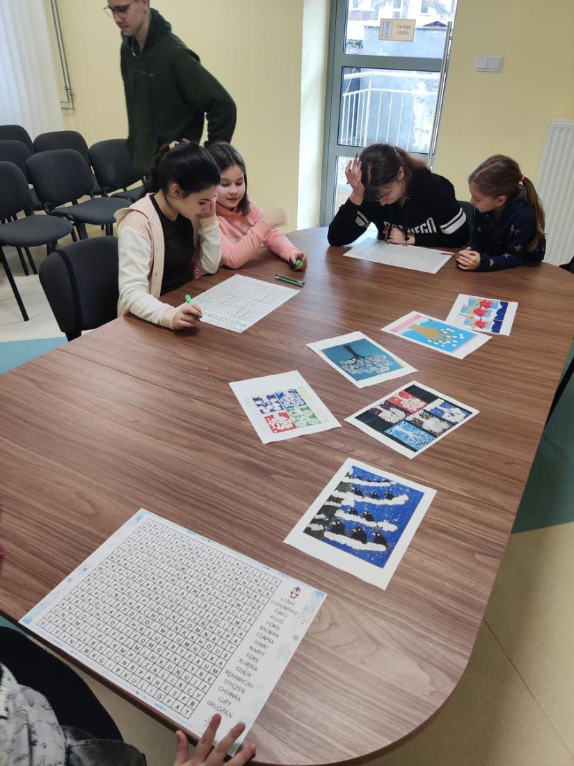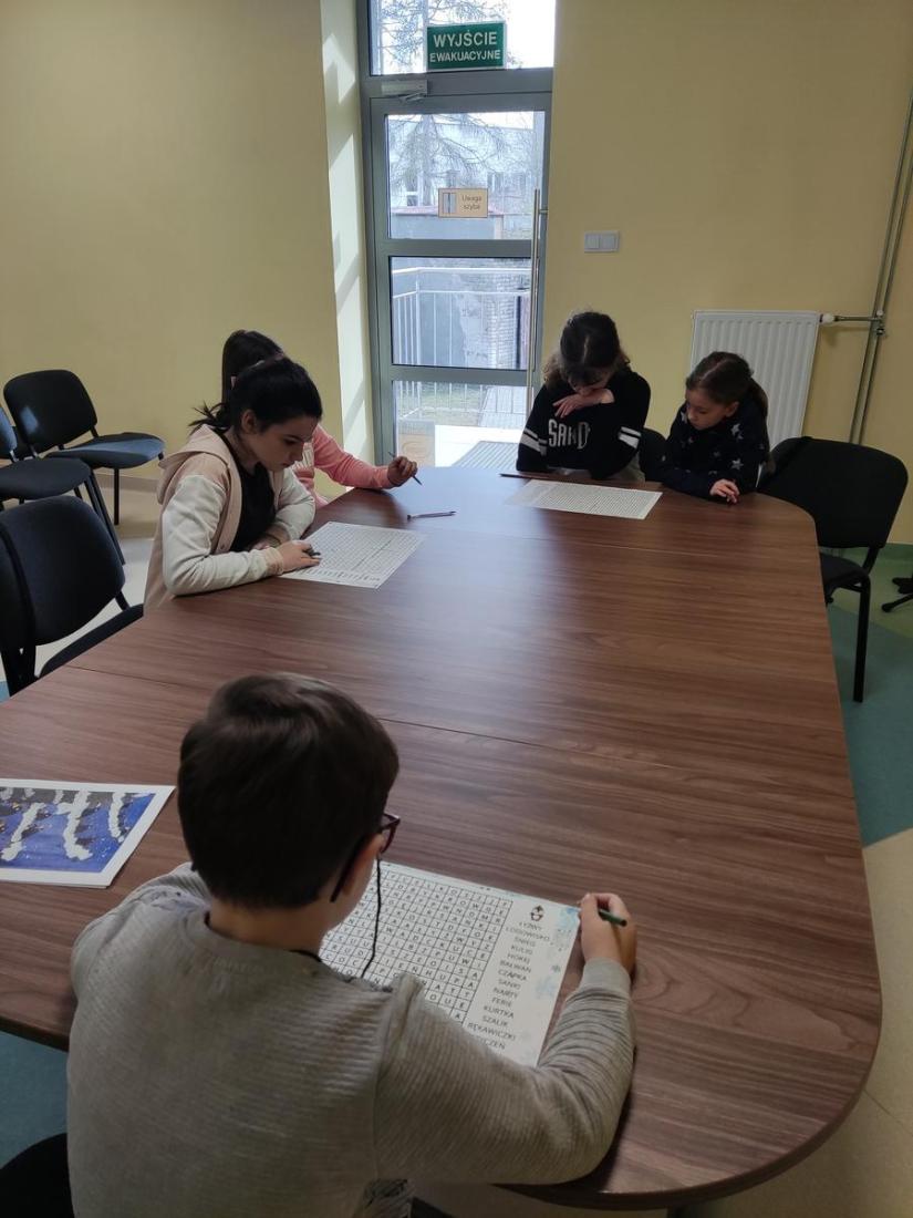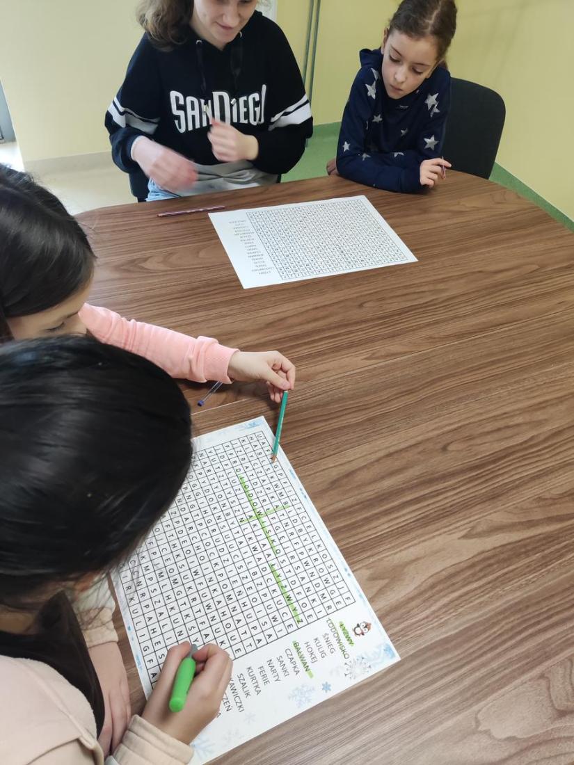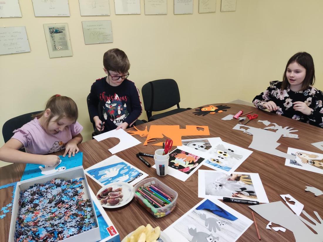 Dobiegły końca ferie zimowe, a razem z nimi spotkania zabawowe w Bibliotece. Miniony tydzień również obfitował w wiele atrakcji i emocji. Dzieci wykonywały prace plastyczne, układały puzzle, grały w gry planszowe, rozwiązywały quizy i rebusy. W dobrych humorach, przy słodkim poczęstunku i ciepłej herbatce podsumowaliśmy wspólnie spędzony czas w bibliotece. Wszyscy zgodzili się, że było zimowo, kolorowo i wesoło.