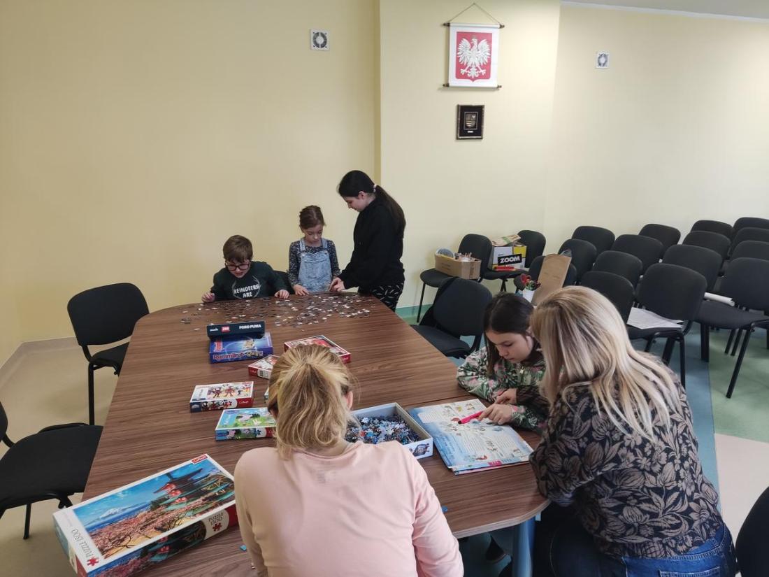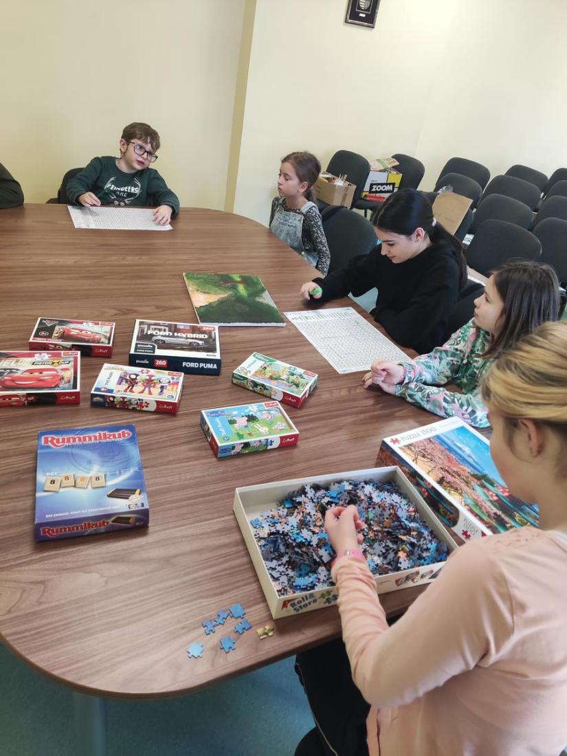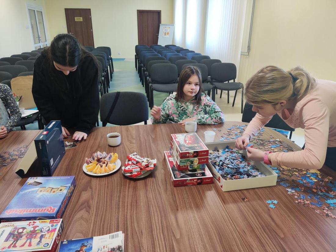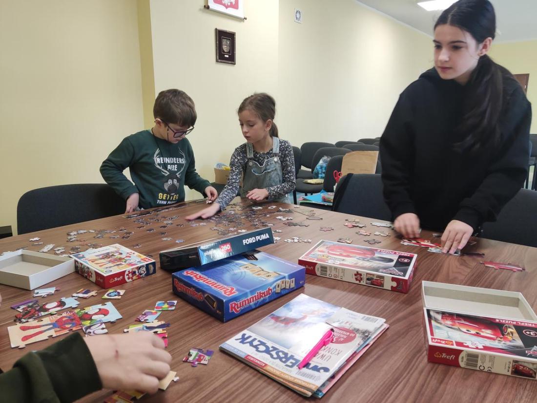 Dobiegły końca ferie zimowe, a razem z nimi spotkania zabawowe w Bibliotece. Miniony tydzień również obfitował w wiele atrakcji i emocji. Dzieci wykonywały prace plastyczne, układały puzzle, grały w gry planszowe, rozwiązywały quizy i rebusy. W dobrych humorach, przy słodkim poczęstunku i ciepłej herbatce podsumowaliśmy wspólnie spędzony czas w bibliotece. Wszyscy zgodzili się, że było zimowo, kolorowo i wesoło.