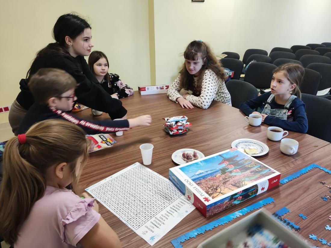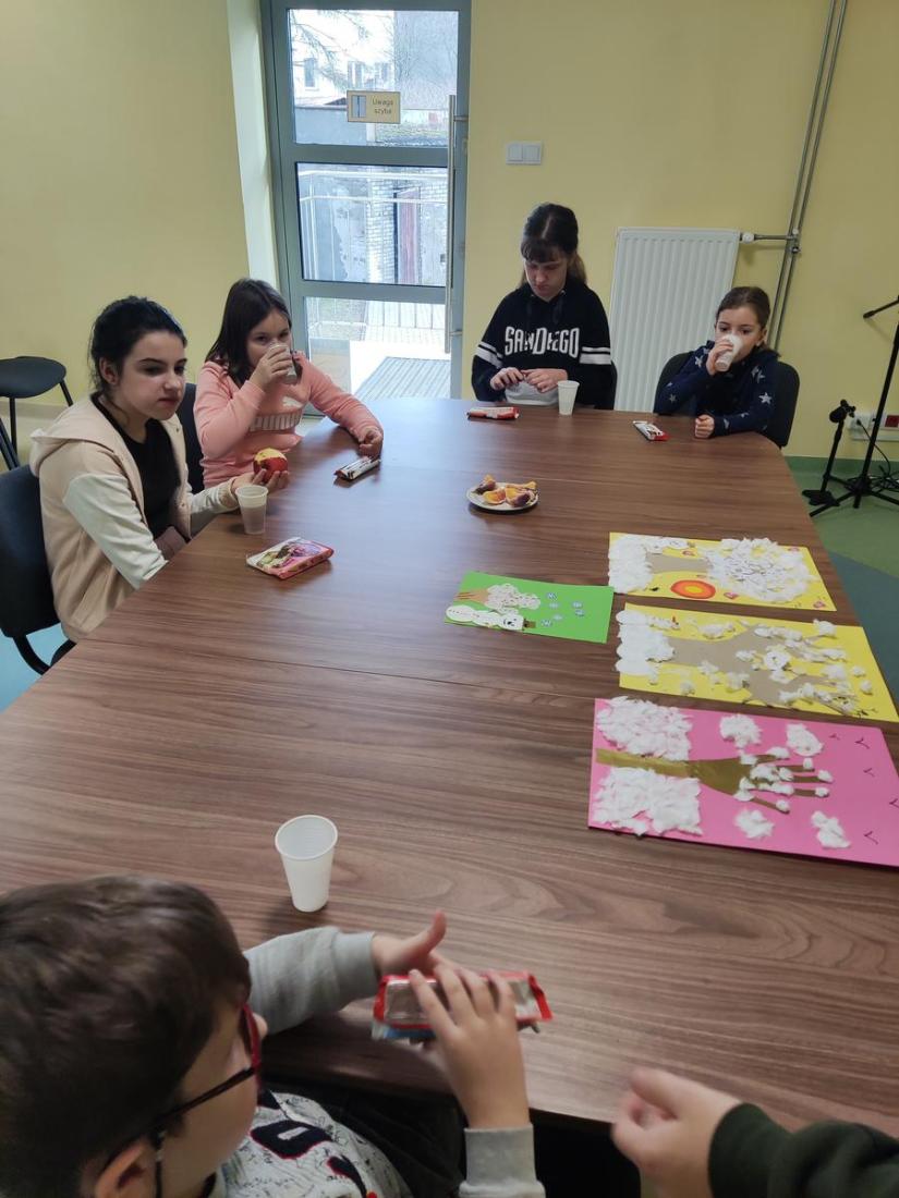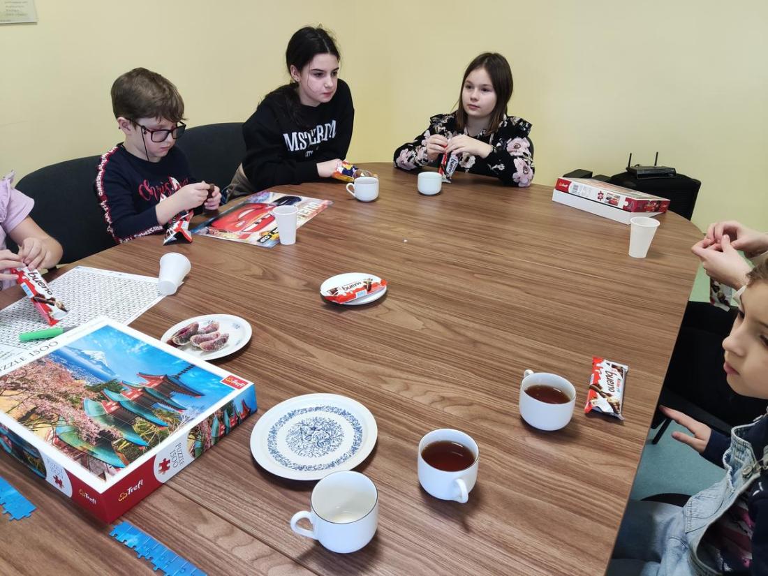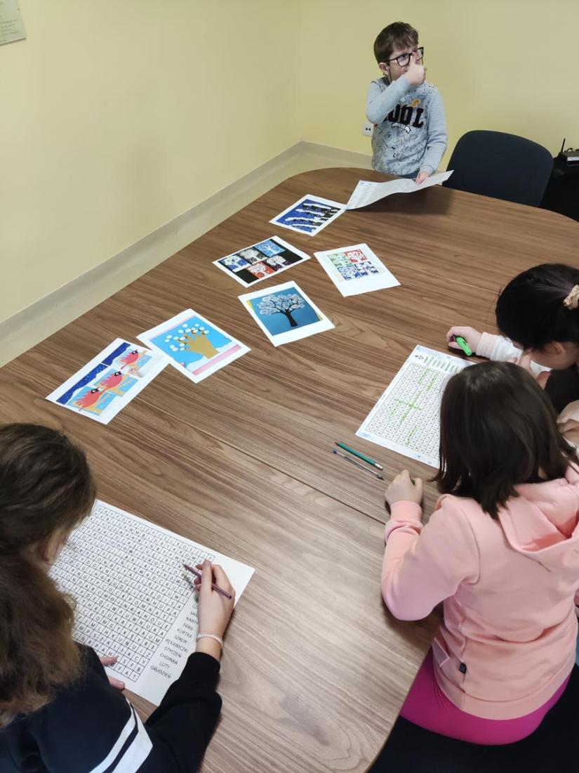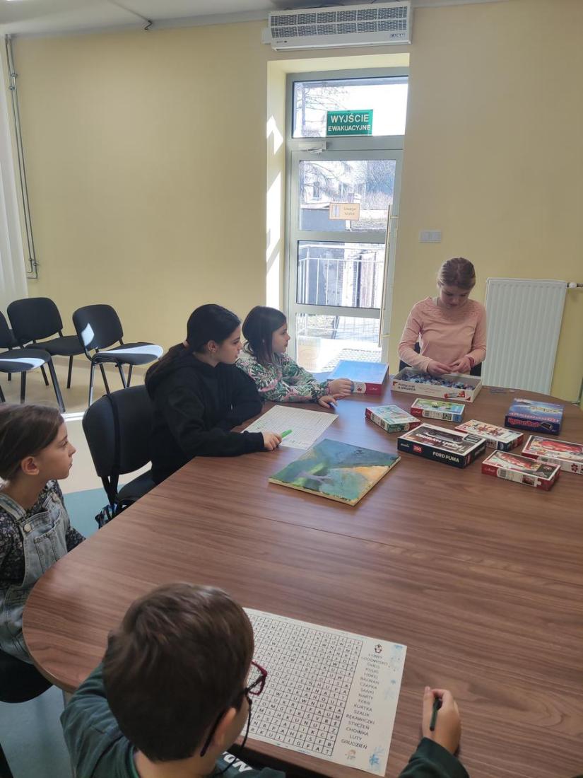 Dobiegły końca ferie zimowe, a razem z nimi spotkania zabawowe w Bibliotece. Miniony tydzień również obfitował w wiele atrakcji i emocji. Dzieci wykonywały prace plastyczne, układały puzzle, grały w gry planszowe, rozwiązywały quizy i rebusy. W dobrych humorach, przy słodkim poczęstunku i ciepłej herbatce podsumowaliśmy wspólnie spędzony czas w bibliotece. Wszyscy zgodzili się, że było zimowo, kolorowo i wesoło.