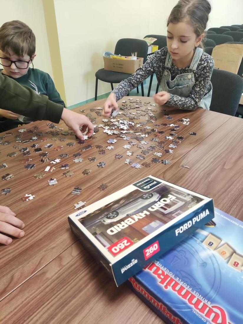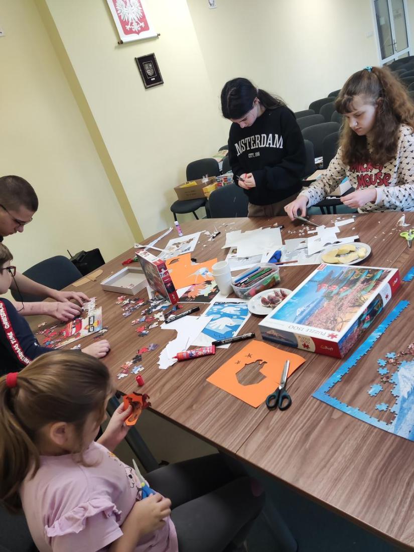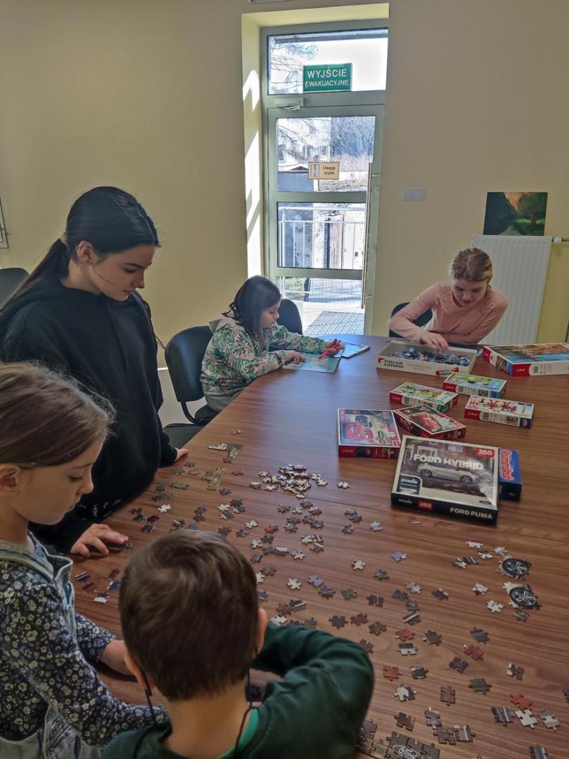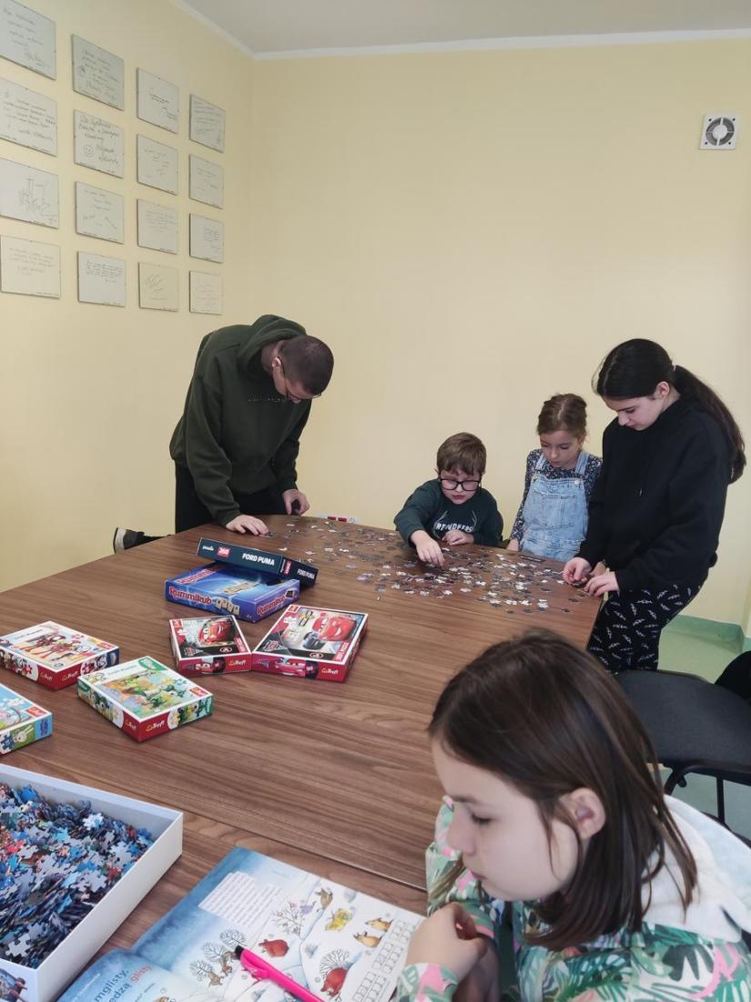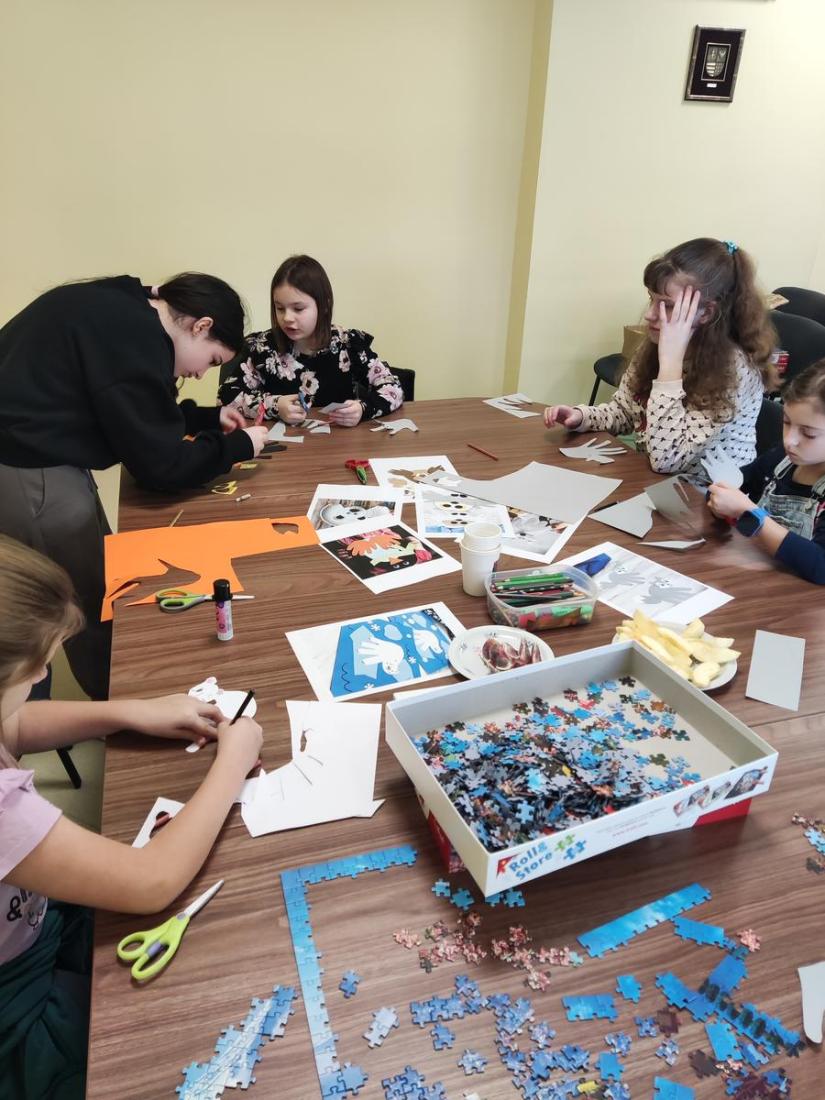 „O tym, czego nie znajdziecie w cyfrowym świecie” – 29 stycznia to Międzynarodowy Dzień Puzzli, dzień ten ma zwrócić uwagę na pozytywny wpływ puzzli na nasz mózg. Łamigłówki świetnie rozwijają koncentrację oraz stymulują obszary odpowiedzialne w umyśle za logiczne myślenie. Dlatego na naszych zajęciach, w tym dniu nie zbrakło małych, lubianych przez wszystkich kolorowych kartoników. Na zajęciach „Zaczarowana zima” z kolorowego papieru wykonywaliśmy zwierzęta, które kojarzą nam się z zimą. Opowiadaliśmy o tym gdzie spędzają zimę, jak nazywają się ich mieszkania,w jaki sposób szykują się do zimy oraz jaką część świata zamieszkują. Na ten temat dzieci wykazały się dużą wiedzą. Wszystkim, którzy wybrali bibliotekę na czas ferii serdecznie dziękujemy i zapraszamy w przyszłym roku.