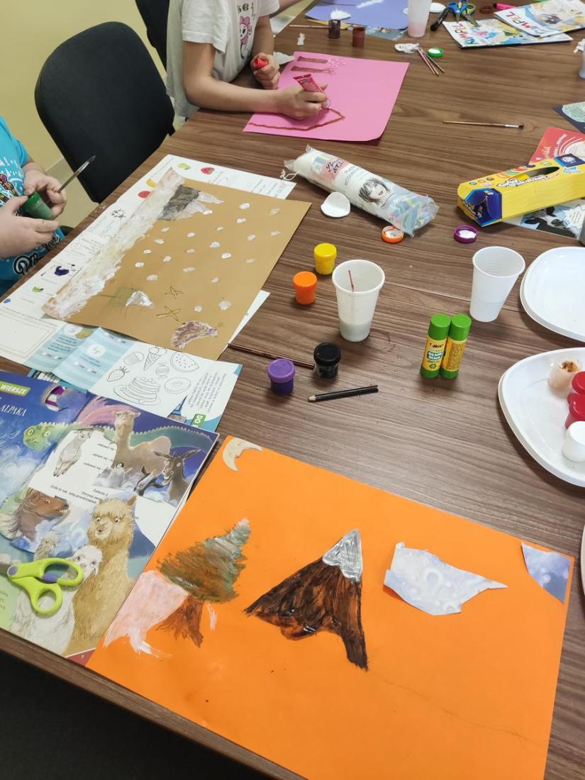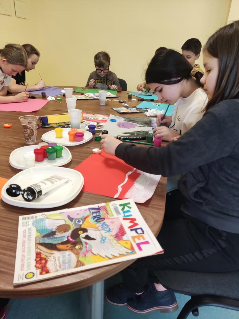 „Zaczarowana zima” to tytuł zajęć, na których dzieci wysłuchały czytanego przez bibliotekarza opowiadania o Muminkach „Zima i czary” wg T. Jansson. Opowiadanie zainspirowały nas do wykonania pięknych, kolorowych zimowych pejzaży.