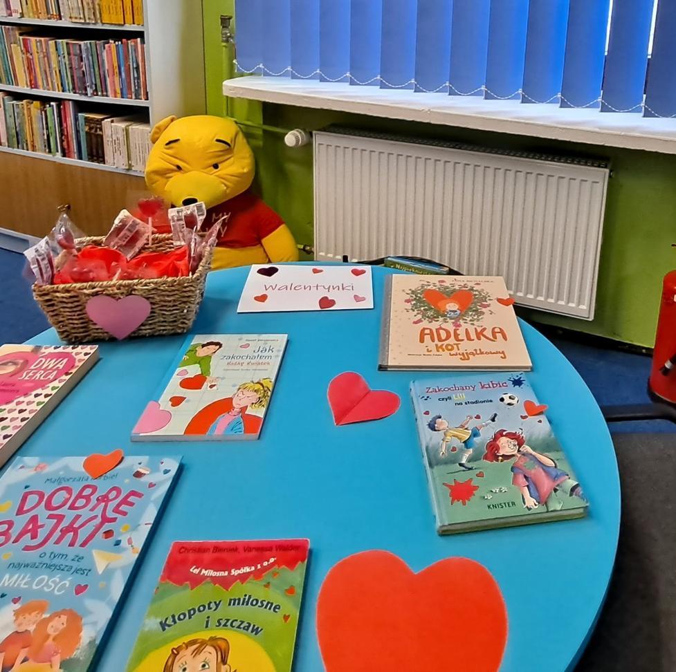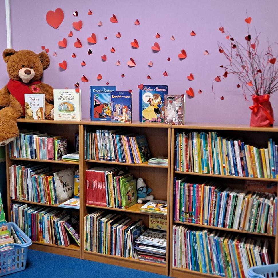 14 lutego 2025 r. Filia nr 2 – wypożyczalnia dla dzieci i młodzieży przygotowała dla swoich czytelników walentynkową wystawkę książek o przyjaźni i szczęściu.