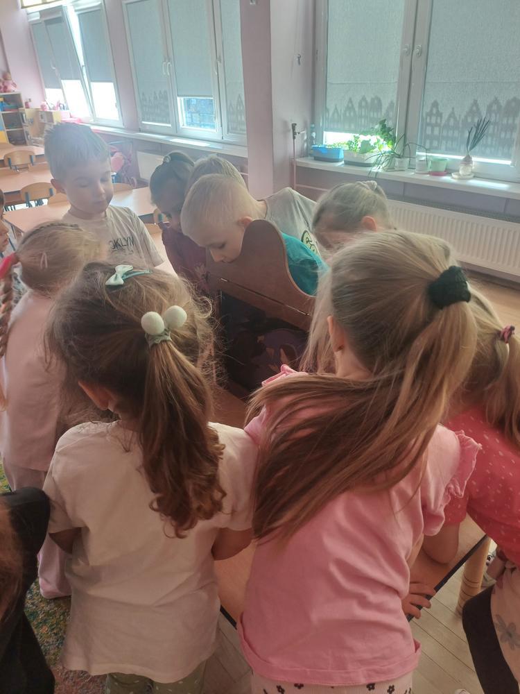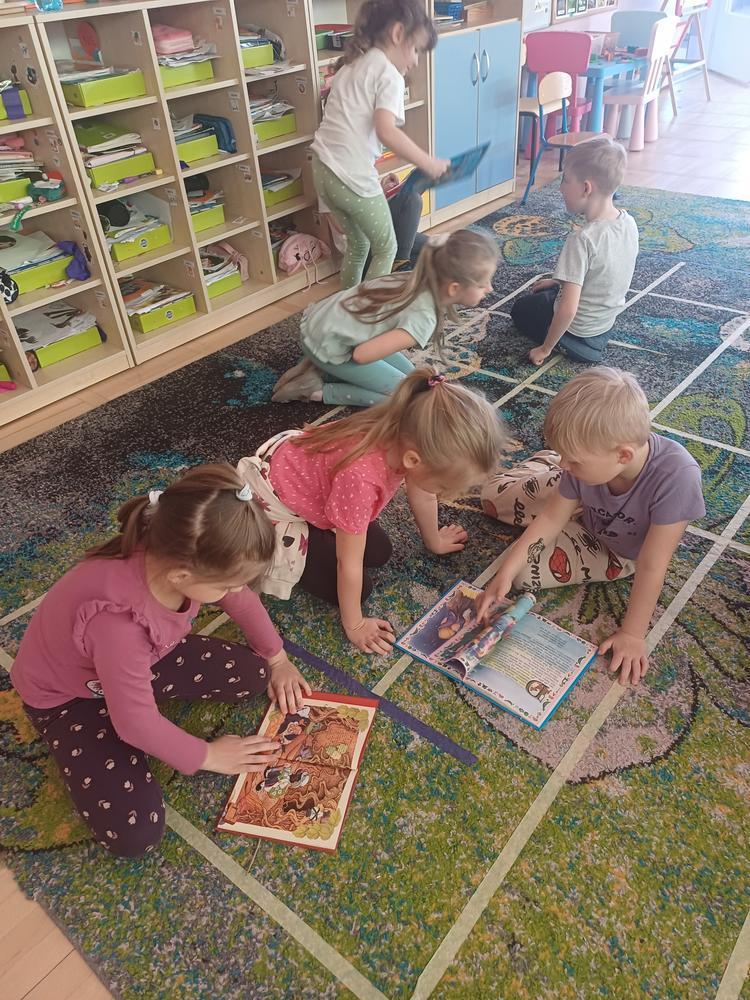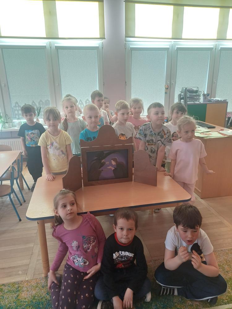 Przedszkolaki obejrzały i wysłuchały baśni „Calineczka” przedstawionej w Teatrzyku Kamishibai, później z zainteresowaniem oglądały różne wydania baśni H.Ch. Andersena. Zajęcia uzupełniły wiosenne zagadki, na zakończenie dzieci otrzymały kolorowanki.
