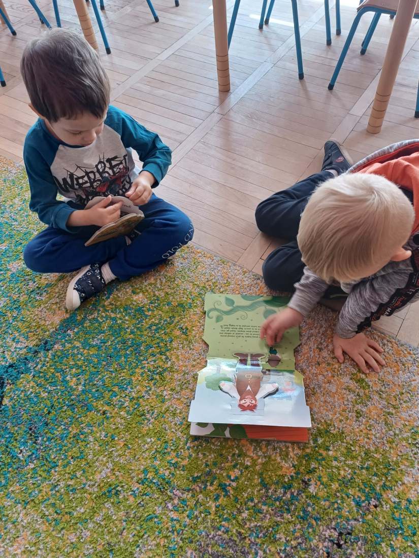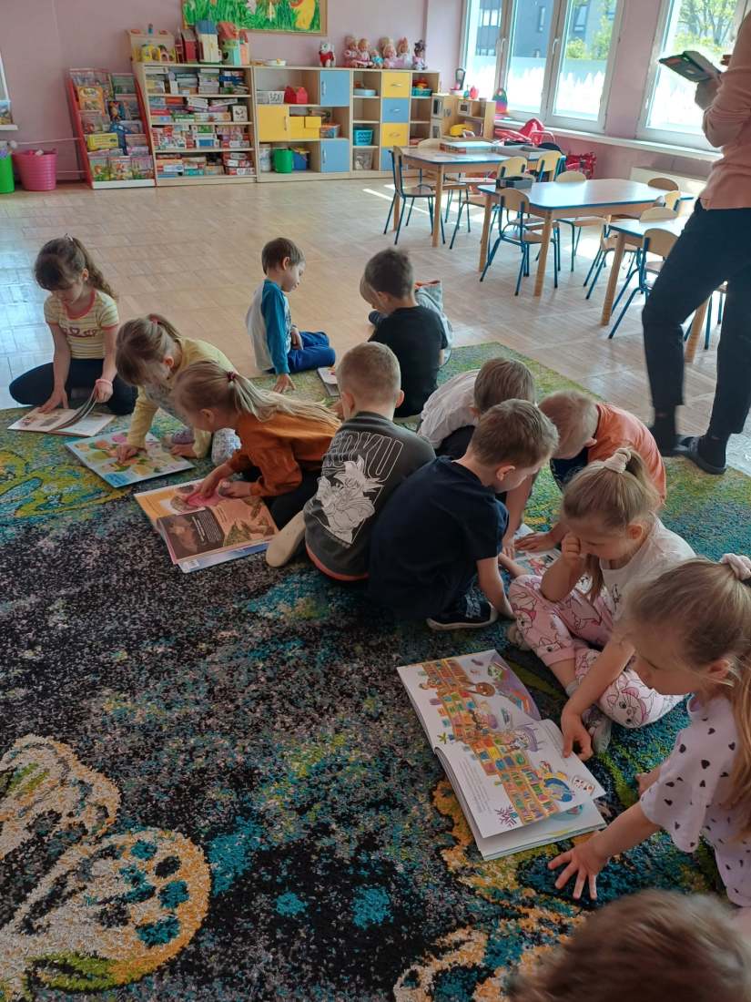 Był też czas na oglądanie kolorowych książeczek o różnych kształtach i formatach oraz zagadki o zwierzętach.