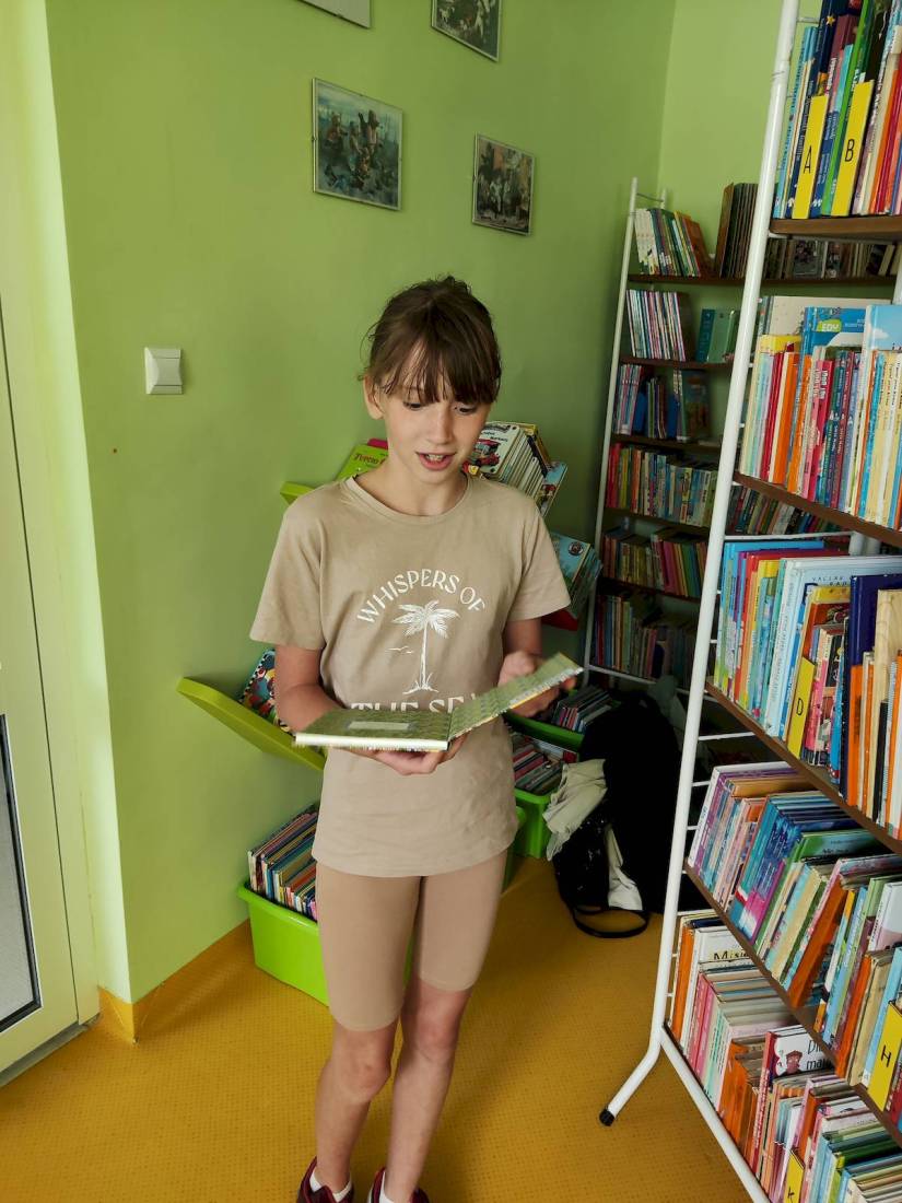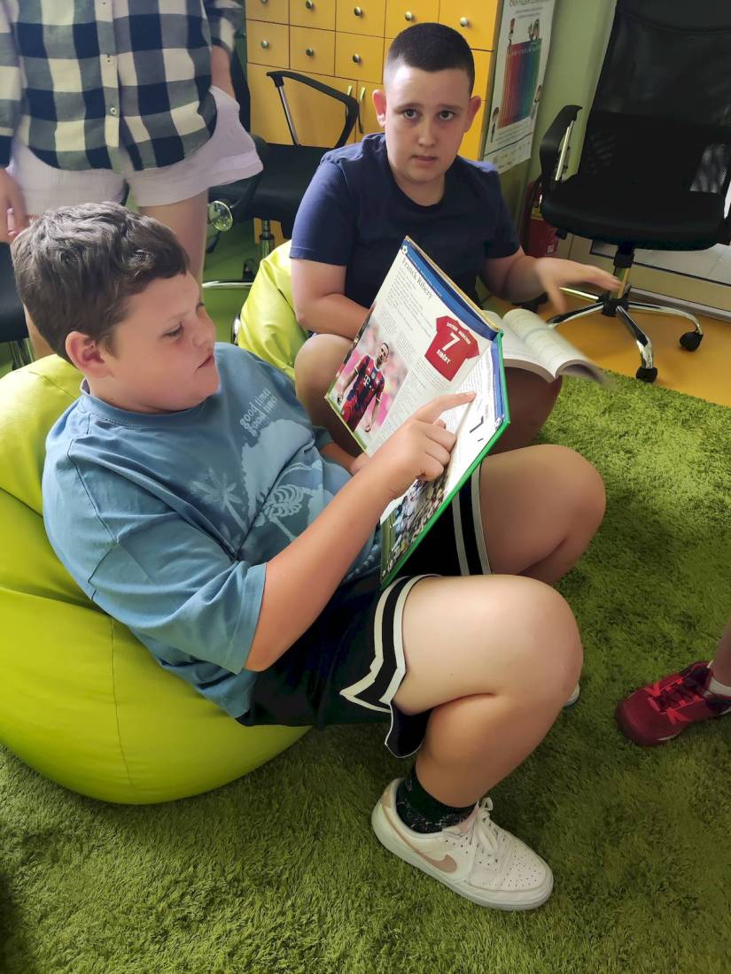 „Czy warto czytać książki i odwiedzać bibliotekę?” – to tytuł zajęć, w których uczestniczyła młodzież z klasy V ze Szkoły Podstawowej nr 4. Zajęcia odbyły się 25 czerwca 2025 r. w Oddziale dla dzieci i młodzieży Filii nr 1 przy ul. Towarowej.
