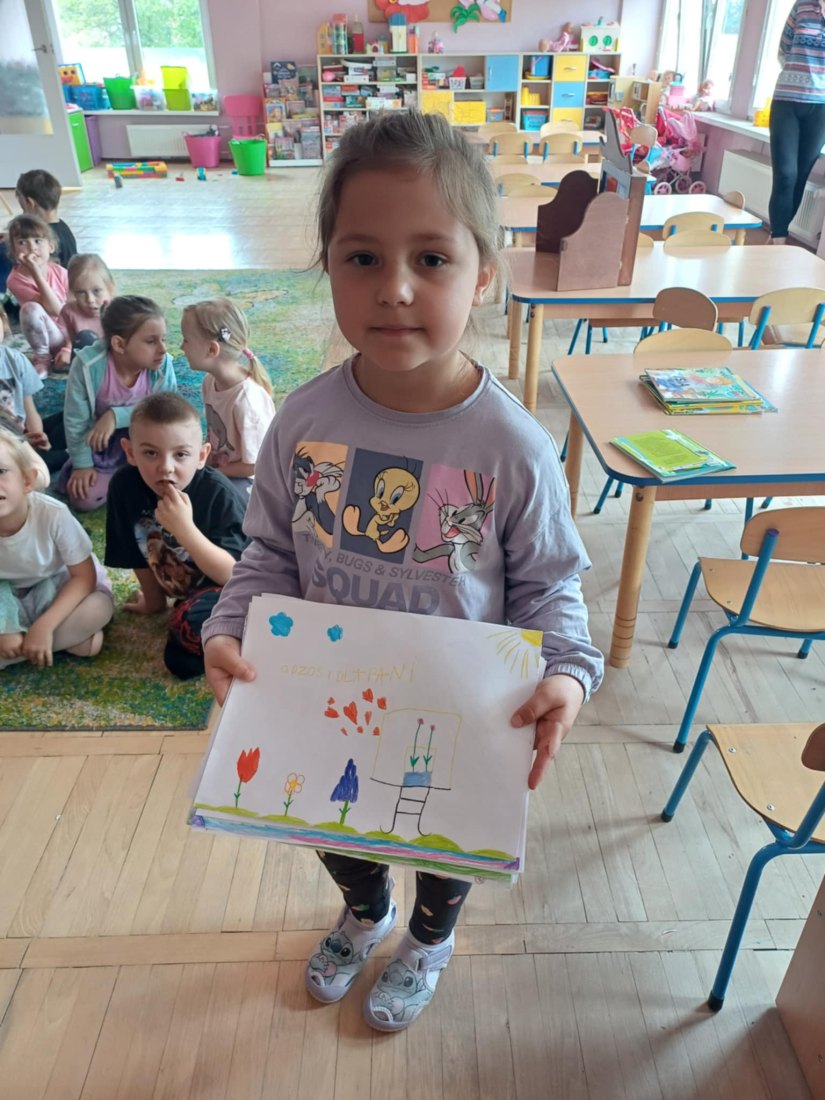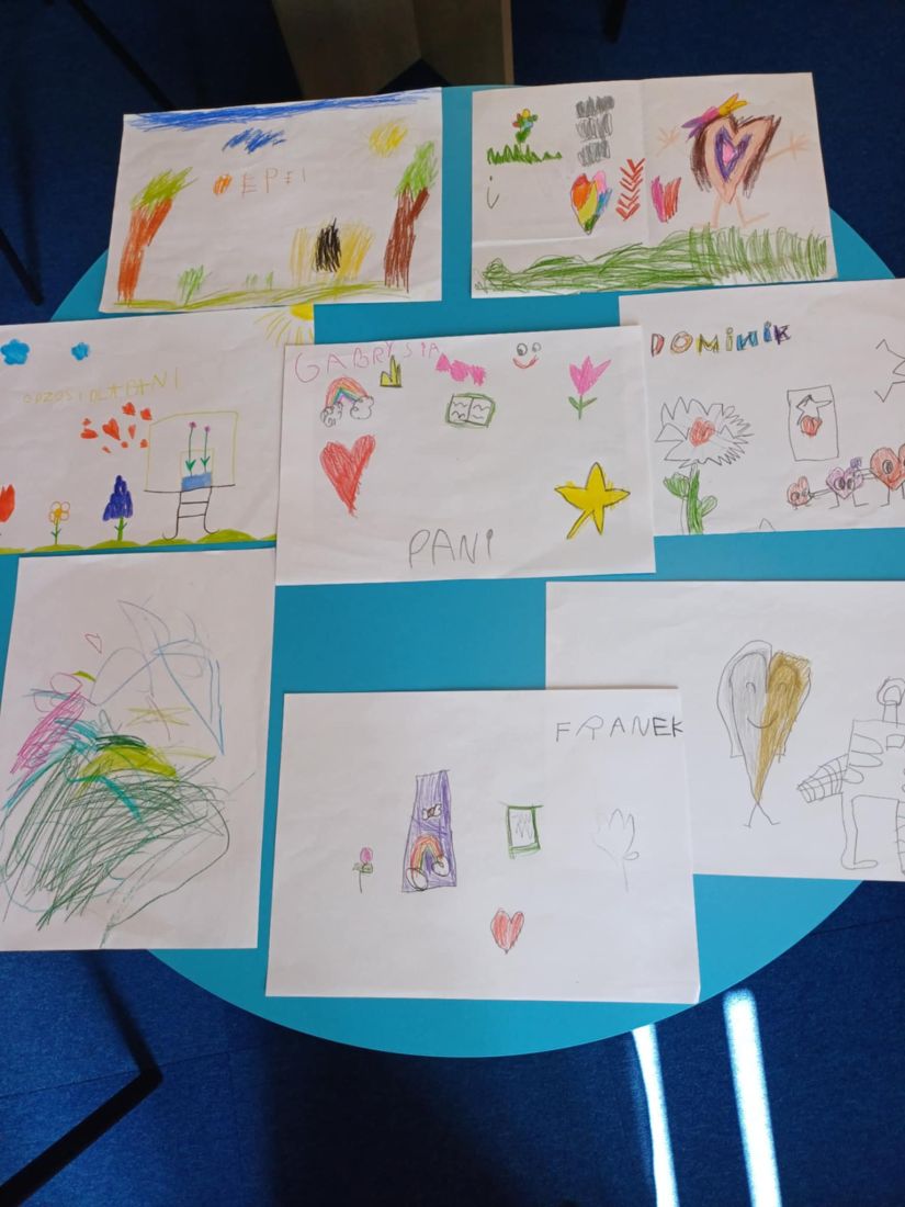 Przedszkolaki przygotowały również bardzo miłą niespodziankę dla pani bibliotekarki – były to własnoręcznie wykonane rysunki.