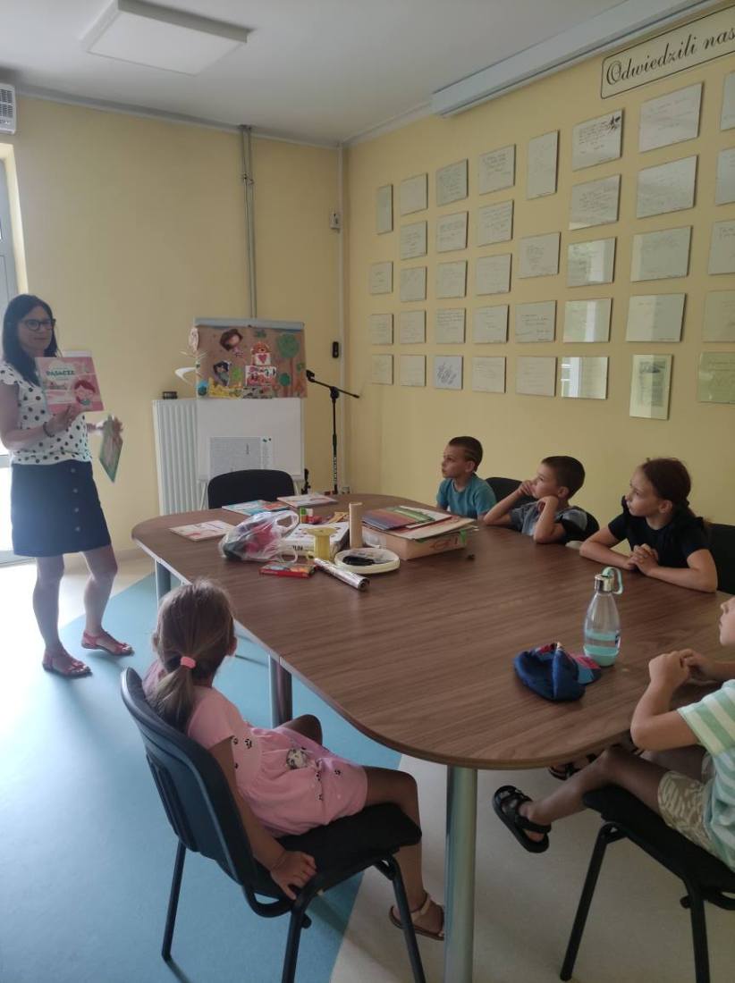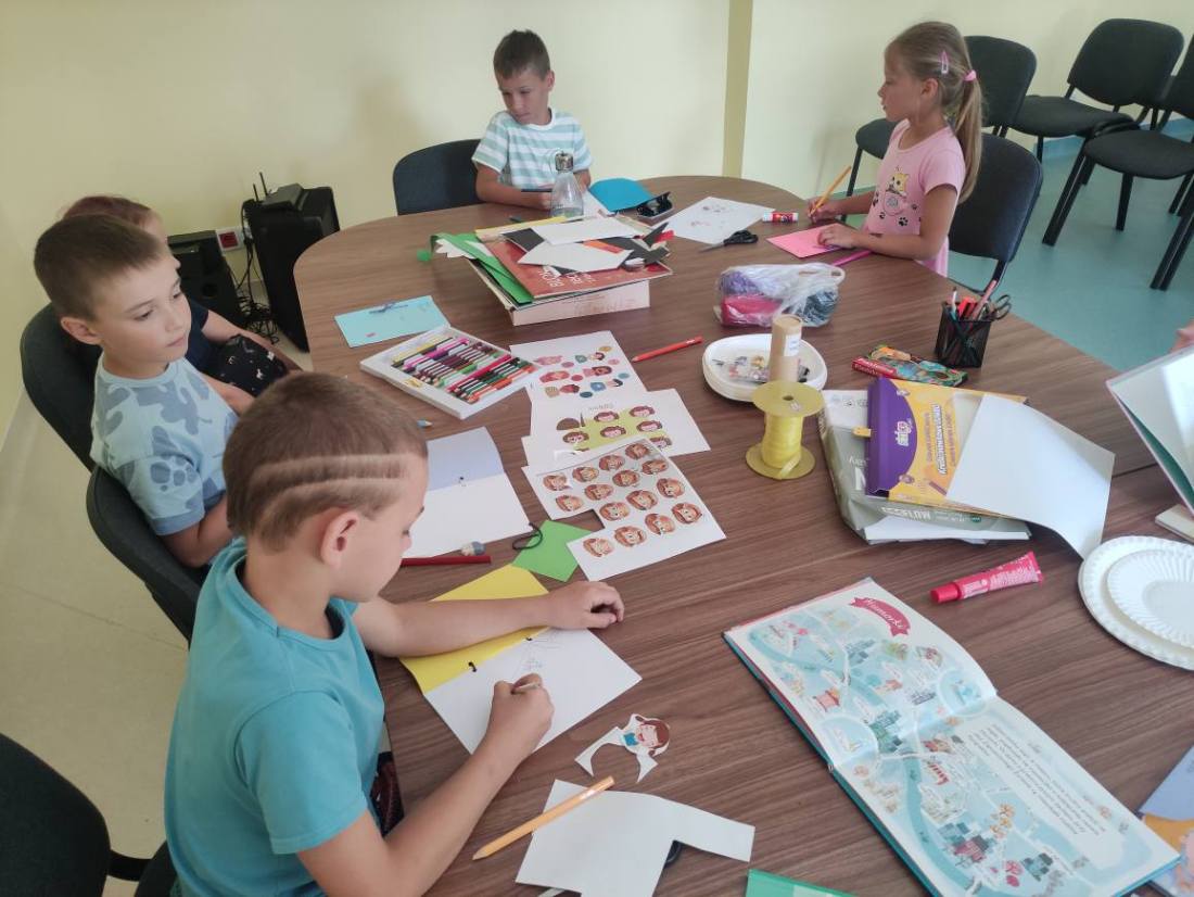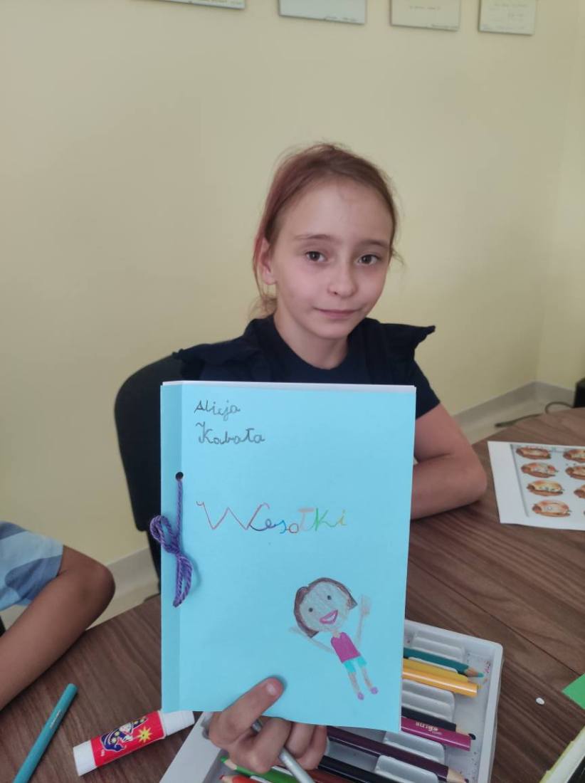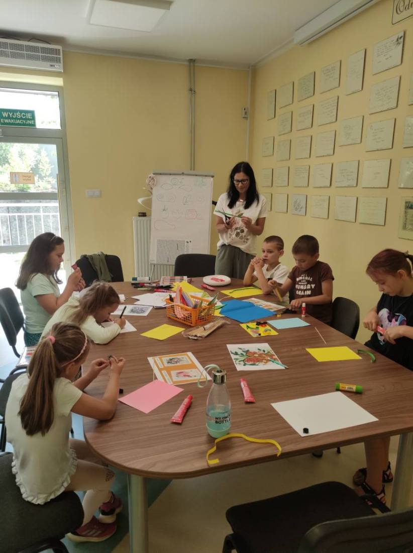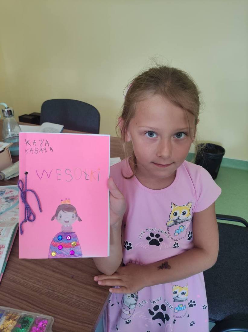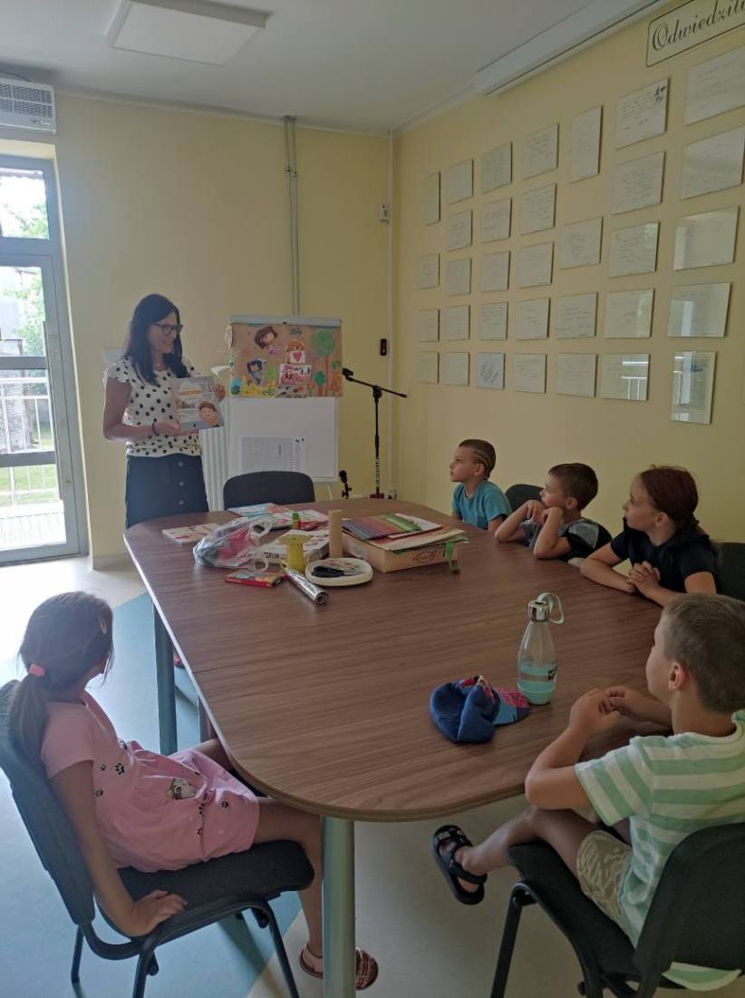 15.07.2025 r. w bibliotece przy ul. Towarowej odbyły się kolejne wakacyjne zajęcia z cyklu Miasteczko Humorki. Dzieci z zainteresowaniem wysłuchały opowiadania pt. „Kłamczusiaki” Agnieszki Zimnowodzkiej. Rozmawialiśmy o emocjach i cechach, które mogą charakteryzować ludzi. Uczestnicy mieli za zadanie wymyślić rodzinkę i stworzyć własną książkę na jej temat i tak powstały książki o Wesołkach i Kosmonautach, w których znalazły się ilustracje miasta Humorki, domki jego nowych mieszkańców oraz bohaterowie narysowani zgodnie z ich szczególnymi typami charakteru.