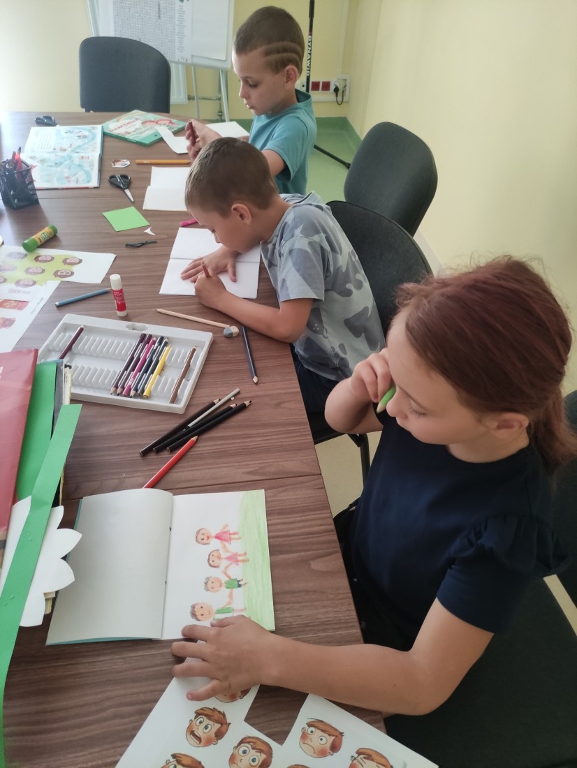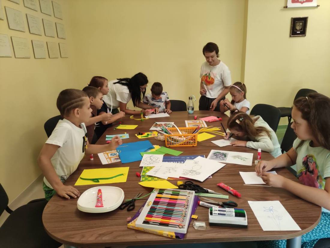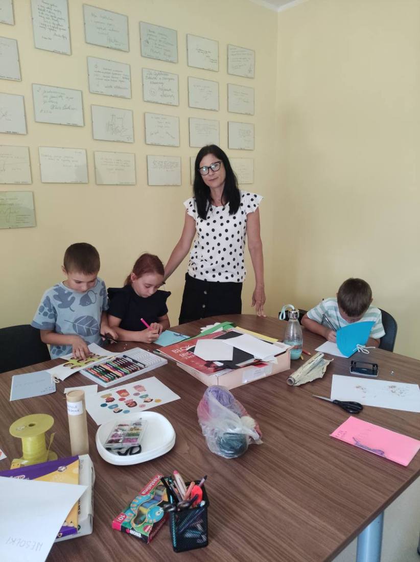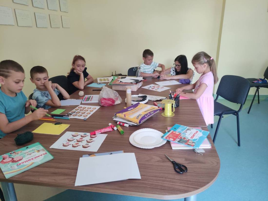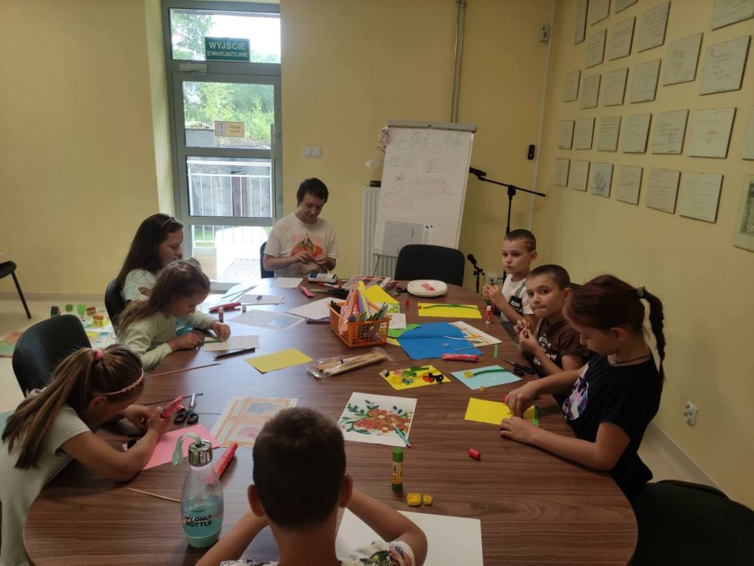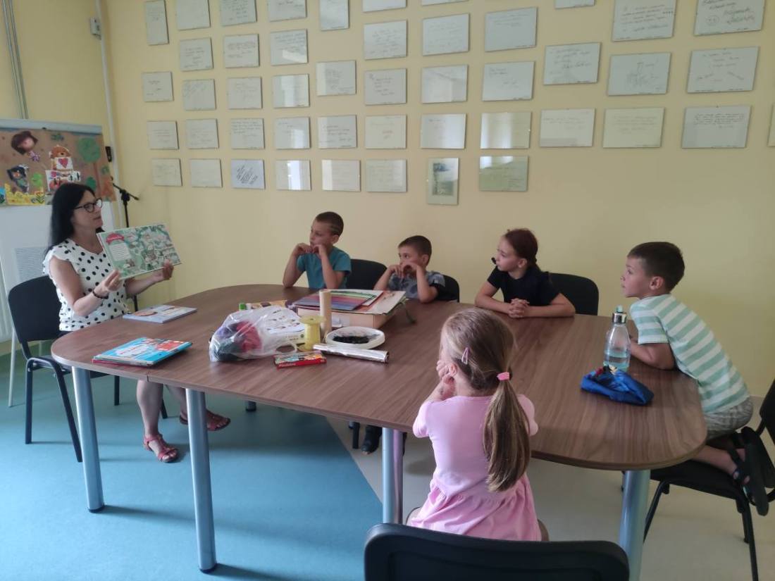 15.07.2025 r. w bibliotece przy ul. Towarowej odbyły się kolejne wakacyjne zajęcia z cyklu Miasteczko Humorki. Dzieci z zainteresowaniem wysłuchały opowiadania pt. „Kłamczusiaki” Agnieszki Zimnowodzkiej. Rozmawialiśmy o emocjach i cechach, które mogą charakteryzować ludzi. Uczestnicy mieli za zadanie wymyślić rodzinkę i stworzyć własną książkę na jej temat i tak powstały książki o Wesołkach i Kosmonautach, w których znalazły się ilustracje miasta Humorki, domki jego nowych mieszkańców oraz bohaterowie narysowani zgodnie z ich szczególnymi typami charakteru.