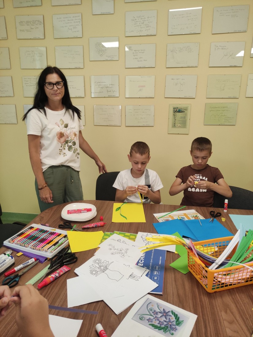 16.07.2025 r. w bibliotece przy ul. Towarowej powstały prawdziwe kolorowe cuda rękodzielnicze. Dzieci na wakacyjnych zajęciach poznały nową technikę z rodzaju papieroplastyki – Quilling!