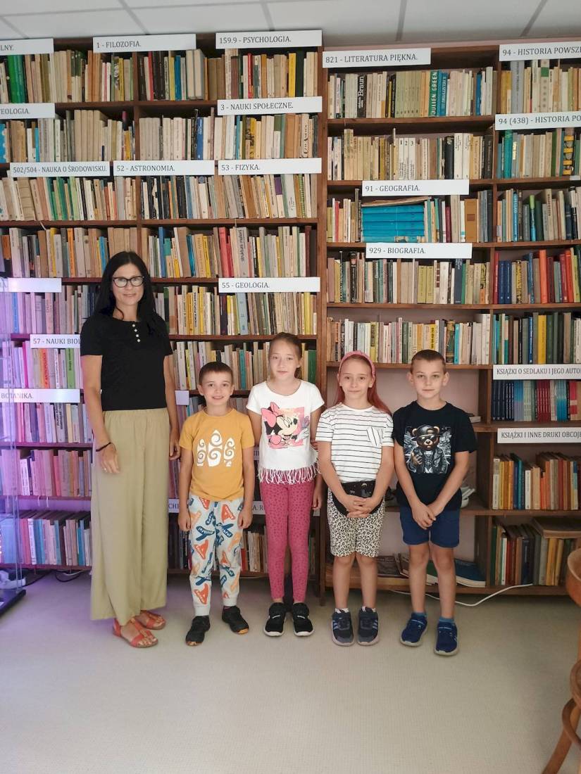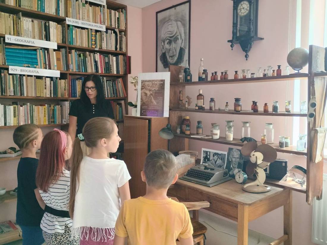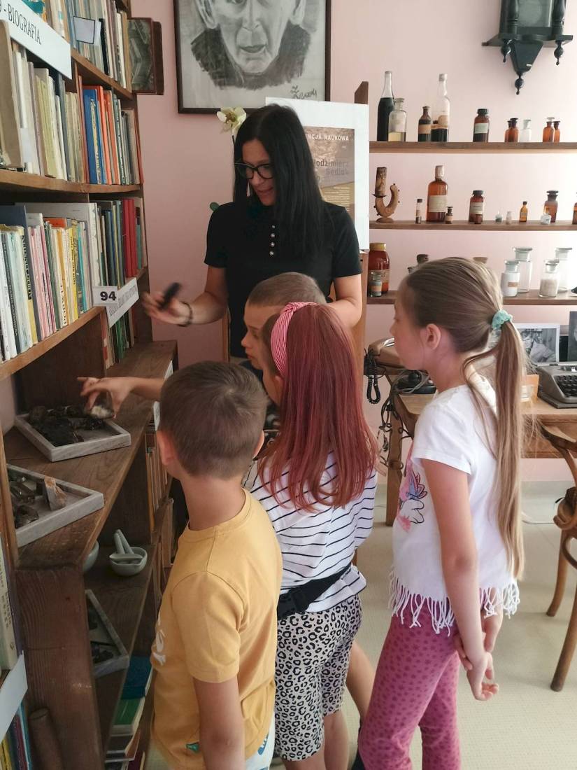 Dzieci, które 17.07.2025 r. wzięły udział w zajęciach wakacyjnych w bibliotece miały okazję zwiedzić Izbę Pamięci ks. prof. Włodzimierza Sedlaka, która mieści się w Filii nr 1 przy ul. Towarowej 20.