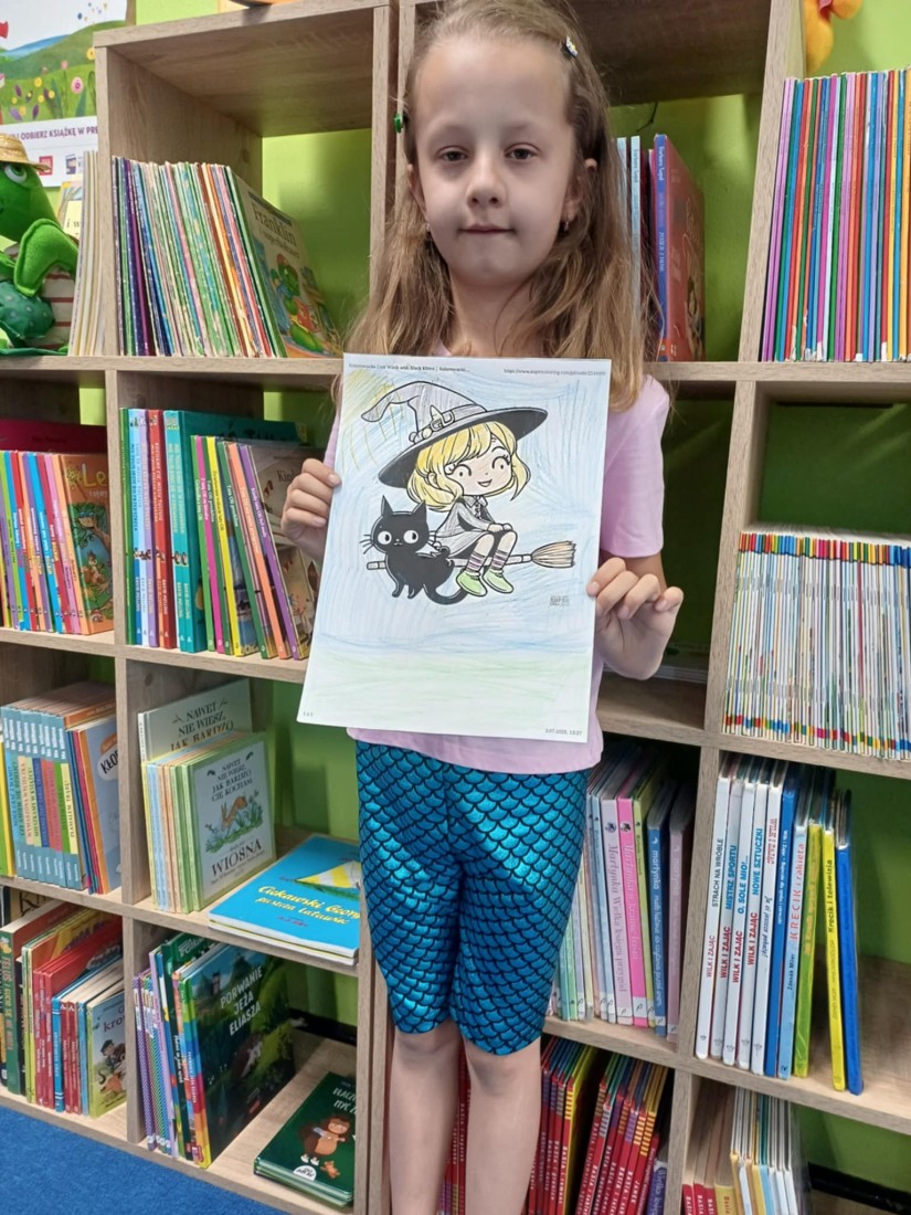 Wykonywanie portretu czarownicy oraz magicznego kapelusza malutkiej widźmy.