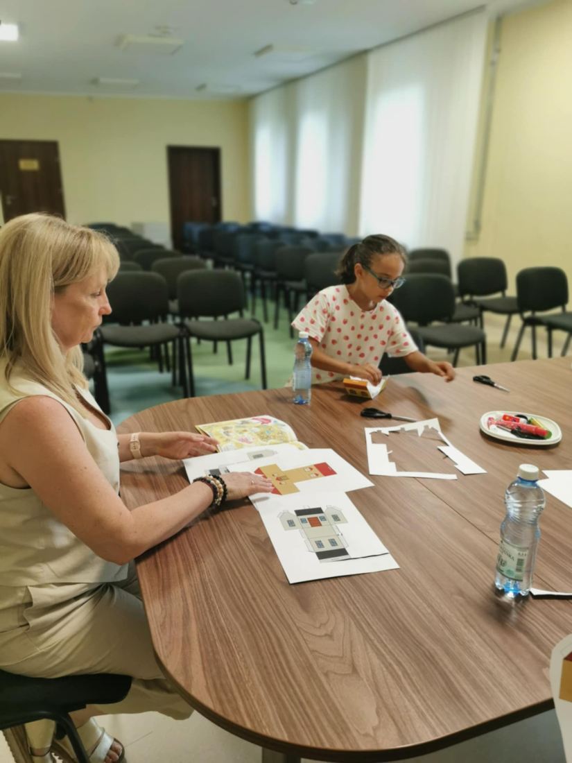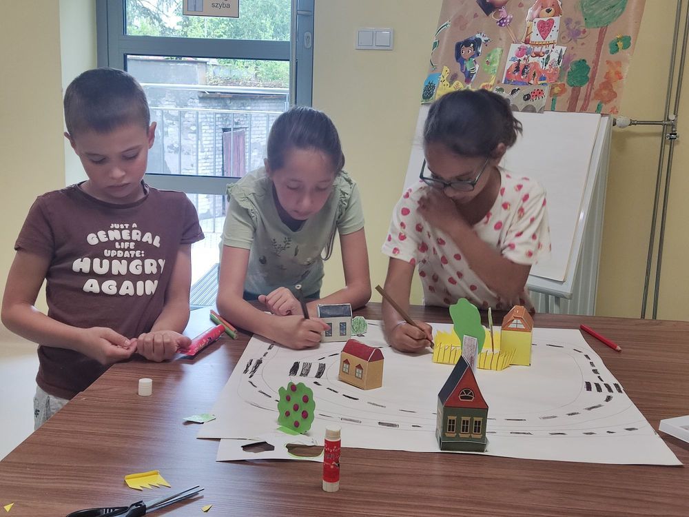 Uczestnicy wakacyjnych zajęć Miasteczko Humorki zorganizowanych 7 lipca w Bibliotece przy ul. Towarowej słuchając czytanego przez bibliotekarza opowiadania Agnieszki Zimnowodzkiej „Leniwczaki” przenieśli się do miasteczka o wdzięcznej nazwie Humorki. Poznali jedną z rodzin, która pewnego dnia niespodziewanie weszła w posiadanie małego leniwca, dodatkowo cechą charakteru dominującą w rodzinie było lenistwo. Na przykładzie przygód bohaterów dowiedzieli się że: „Lenistwo można pokonać tylko przez jeszcze większe lenistwo”. Natomiast my, na zajęciach poczuliśmy zapał do pracy i powstała śliczna makieta wspomnianego miasteczka. Na kolejne zajęcia z cyklu Miasteczko Humorki zapraszamy już w przyszły wtorek.