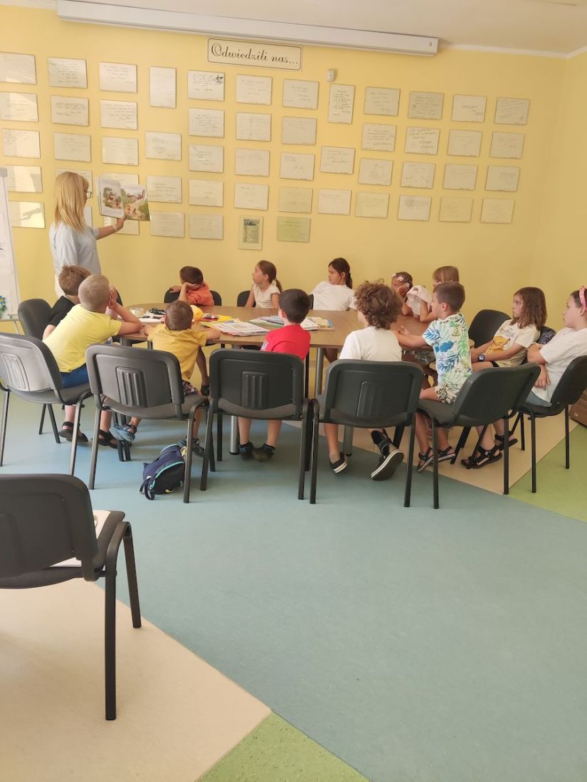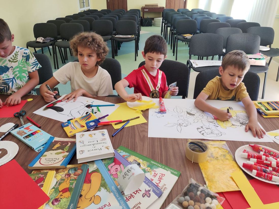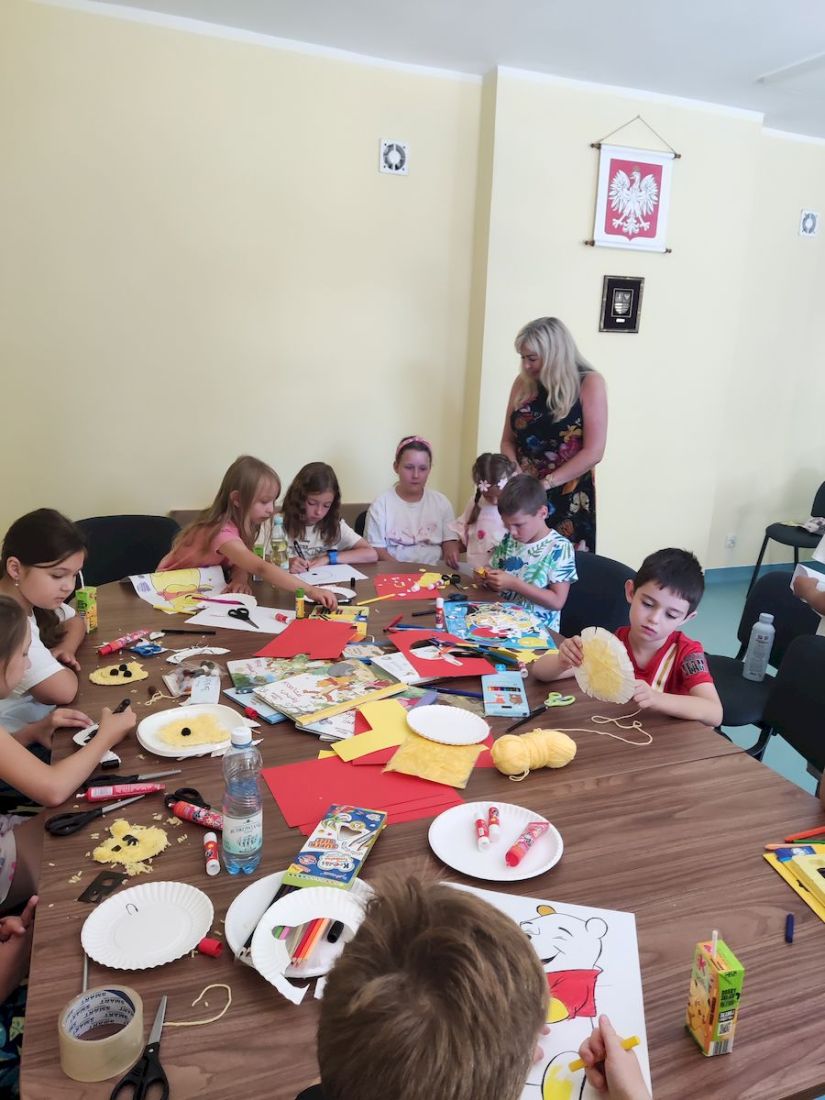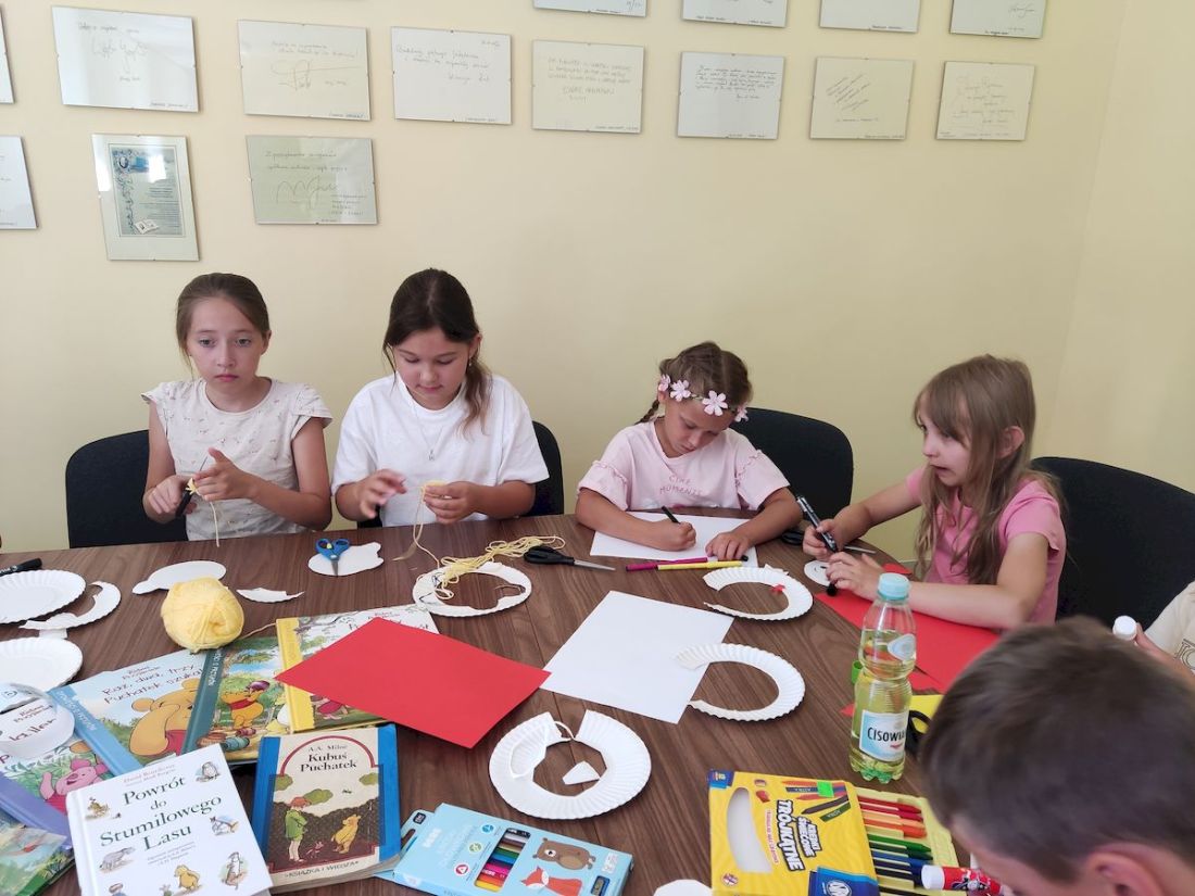5 sierpnia w Bibliotece przy ul. Towarowej odbyły się zajęcia „Co słychać w Stumilowy Lesie”. Poznawaliśmy jedną z przygód Kubusia Puchatka z opowiadania „Kubuś i Przyjaciele. Portrety przyjaciół”. Z opowiadania dowiedzieliśmy się jak ważne w życiu są przyjaźnie, że każdy z nas ma różny charakter, ale należy się wzajemnie akceptować i pomagać sobie. Biorąc przykład z Prosiaczka , który postanowił namalować portrety swoich przyjaciół, my wykonywaliśmy portret Kubusia Puchatka. Dzieci z wielkim entuzjazmem i kreatywnością tworzyły podobizny sympatycznego misia. Powstały kolorowe prace wykonane różną techniką. Wszyscy dobrze się bawili, rozwijając swoje zdolności manualne i wyobraźnię.