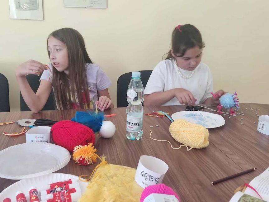 „Papierowy zawrót głowy” to zajęcia, na których poznajemy różne techniki plastyczne i dzieci mogą wykazać się swoją niezwykłą pomysłowością i kreatywnością. 20 sierpnia na zajęciach w Bibliotece przy ul. Towarowej wykonywaliśmy kolorowe marionetki ze styropianowych kulek. Nasze marionetki miały swoje imiona i odgrywały krótkie, wymyślone przez nas scenki. Na zajęciach nie zabrakło poczęstunku dla dzieci.