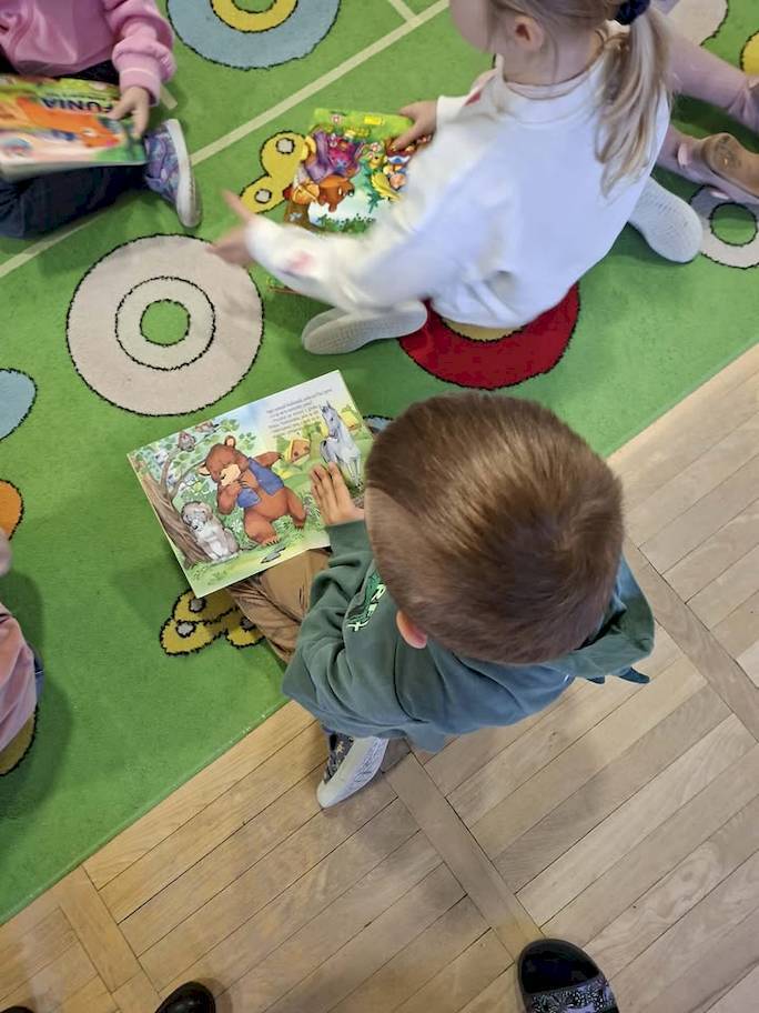Dzieci z zainteresowaniem oglądały przyniesione przez bibliotekarza książeczki, których bohaterami były misie, miśki i niedźwiadki…