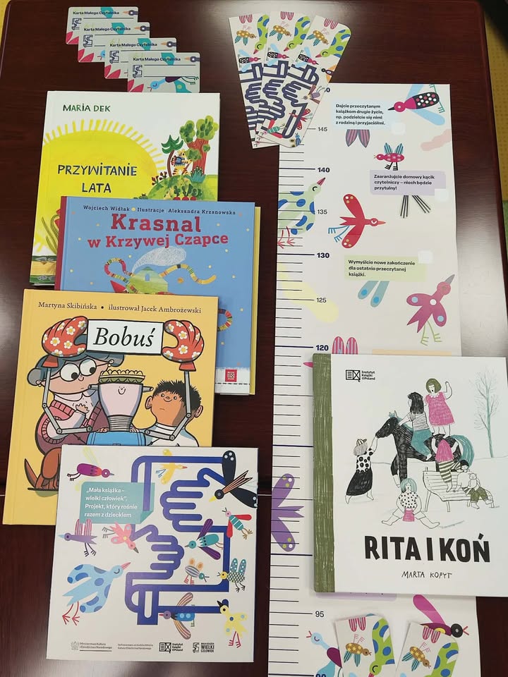 Karta Małego Czytelnika – imienna karta, na której przedszkolak zbiera barwne naklejki za wizyty w bibliotece i wypożyczenie przynajmniej jednej książki z księgozbioru dziecięcego. Po zebraniu dziesięciu naklejek maluch zostanie uhonorowany imiennym Dyplomem Małego Czytelnika.