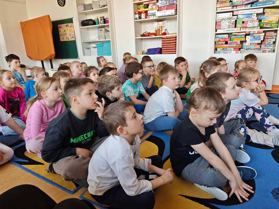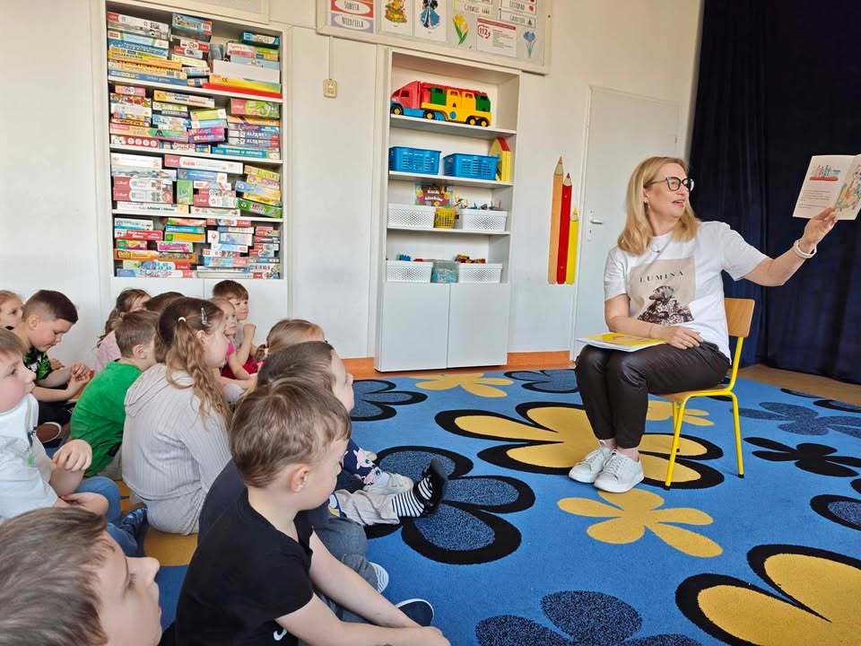 11 marca 2026r. na zaproszenie nauczycieli z Przedszkola nr 6 bibliotekarz z Biblioteki przy ul. Towarowej czytał przedszkolakom bajki opowiadał o Bibliotece. Przedszkolaki wysłuchały czytanego przez bibliotekarza opowiadania A. Głowińskiej pt. „Kicia Kocia w bibliotece”. Opowiadanie nie zostało wybrane przypadkowo, gdyż tematem spotkania była biblioteka i książki. Przedszkolaki z dużym zainteresowaniem słuchały opowieści, a także brały udział w przygotowanych zagadkach. Chętnie odpowiadały o swoich ulubionych książeczkach i aktywnie uczestniczyły w spotkaniu. Na zakończenie dzieci otrzymały kolorowe zakładki do książek i foldery dla rodziców informujące o prowadzonej w bibliotece ogólnopolskiej akcji „Mała książka wielki człowiek”. Żegnając się, przedszkolaki obiecały, że przyjdą do biblioteki razem z rodzicami, by zapisać się do niej i zostać jej czytelnikami oraz podarowały bibliotekarzowi wykonaną przez siebie śliczną laurkę.
