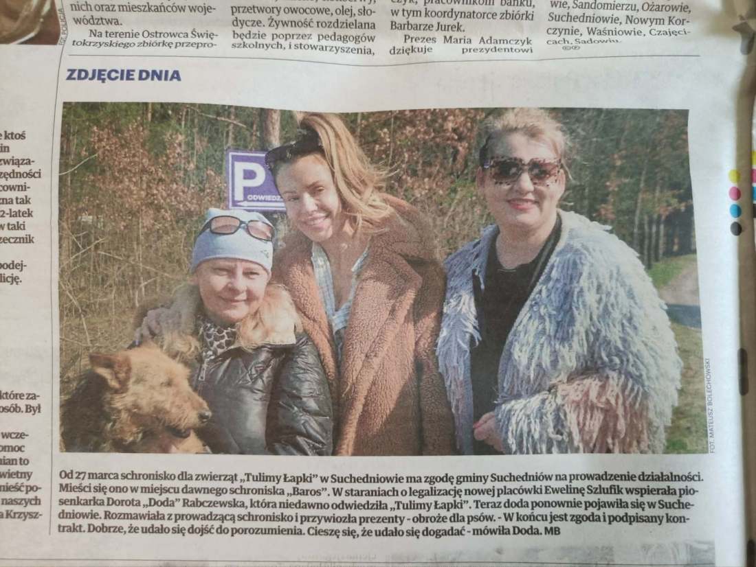 Nasi goście poznali również księgozbiór Czytelni; zaprezentowano im szczególnie Księgozbiór Regionalny oraz Księgozbiór Zabytkowy. Omówiono z nimi również zasady tworzenia Bibliografii regionalnej. W części praktycznej uczennice miały za zadanie przejrzeć aktualne numery Echa Dnia i Echa regionu, aby odnaleźć w nich artykuły dotyczące powiatu skarżyskiego. Przy okazji natrafiły w gazecie na zdjęcie swojej opiekunki p. Moniki Kowalik, która w suchedniowskim schronisku „Tulimy Łapki” spotkała się z Dodą i wspólnie pozowały do fotki :-)