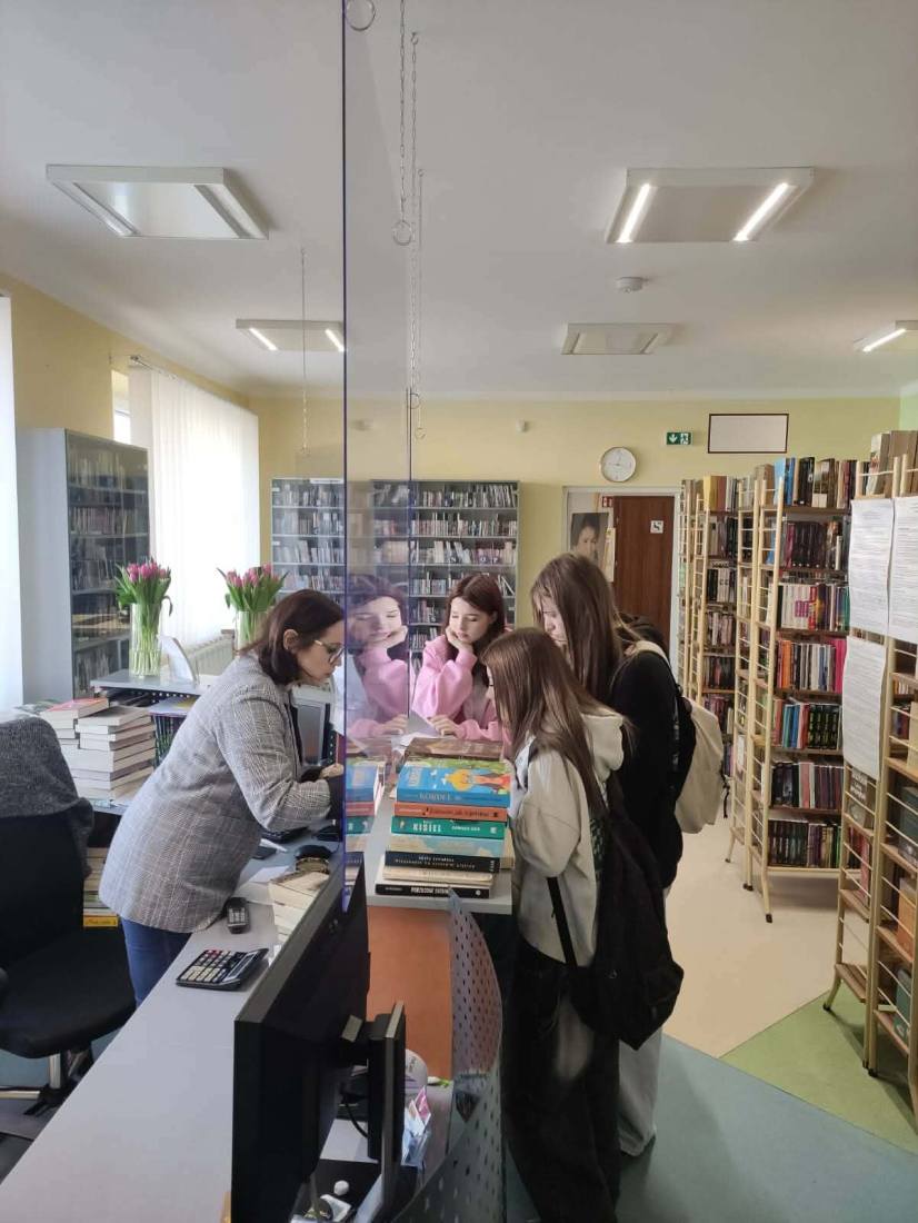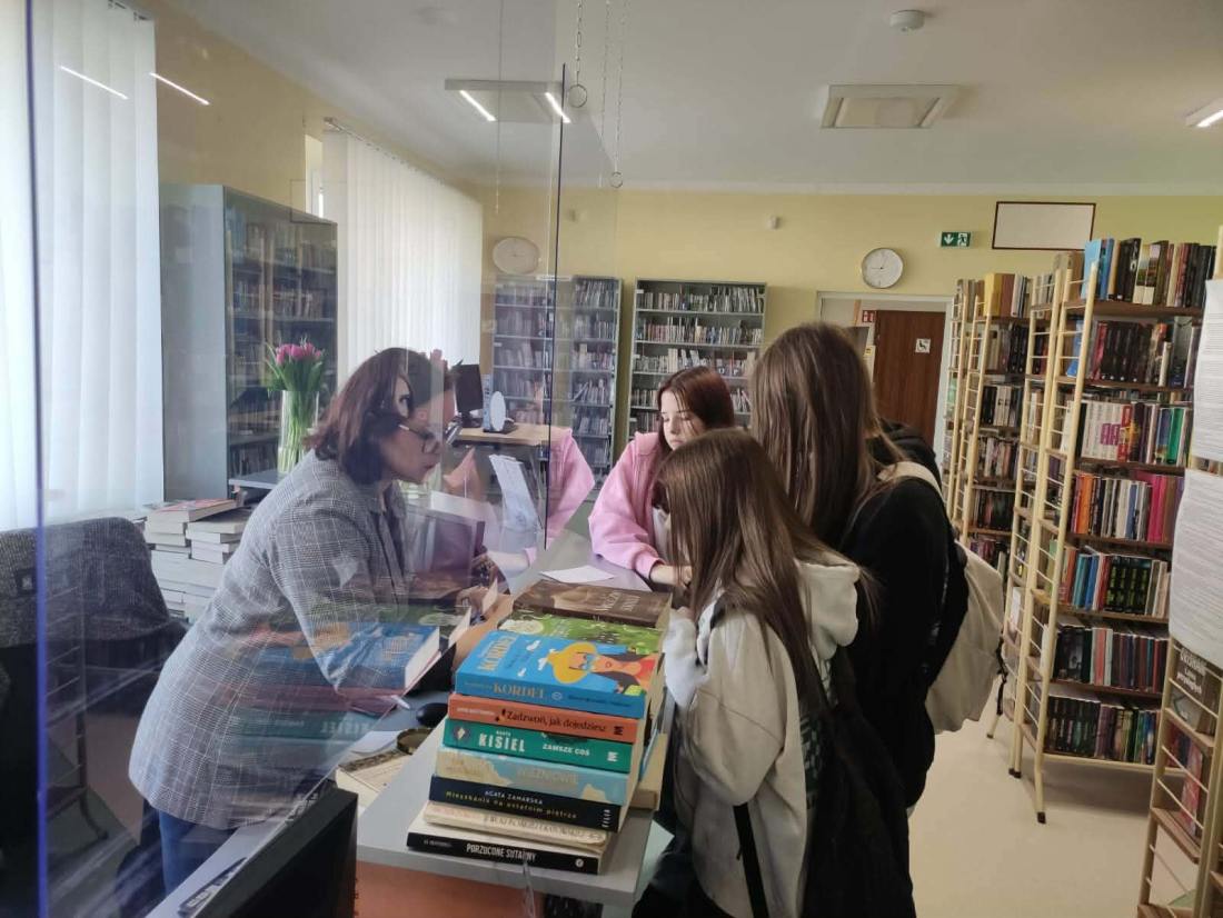 W dniu 16.04.2026 r. bibliotekę przy ul. Towarowej odwiedziła grupa uczennic z Zespołu Szkół Samochodowo – Usługowych im. Władysława „Oseta” Wasilewskiego w Skarżysku – Kamiennej pod opieką p. Moniki Kowalik. Podczas wizyty dowiedziały się w jaki sposób zapisać się do biblioteki oraz jak korzystać z terminala bibliotecznego. Zapoznały się również ze zbiorami w Wypożyczalni dla dorosłych i Oddziale Książek Audio. Młodzież z zainteresowaniem przeglądała publikacje dostosowane do ich wieku, które można u nas wypożyczyć.