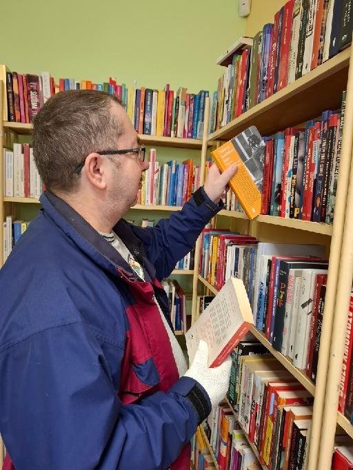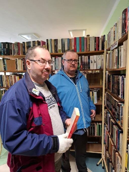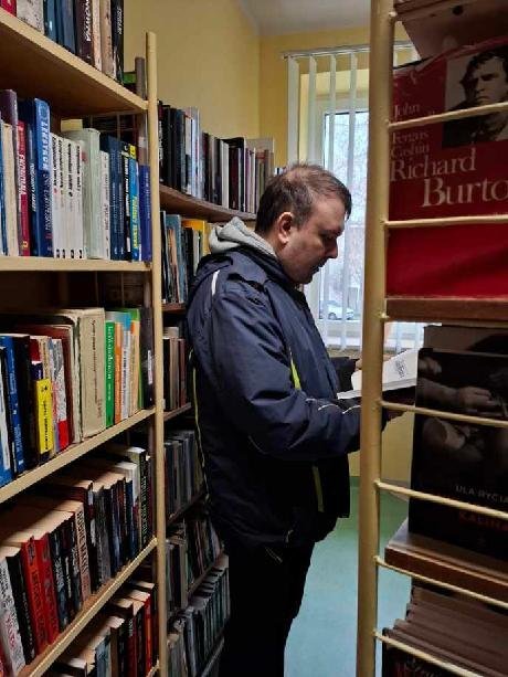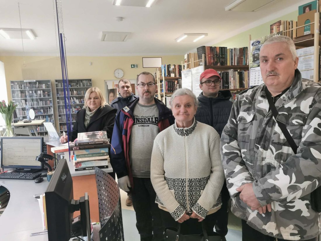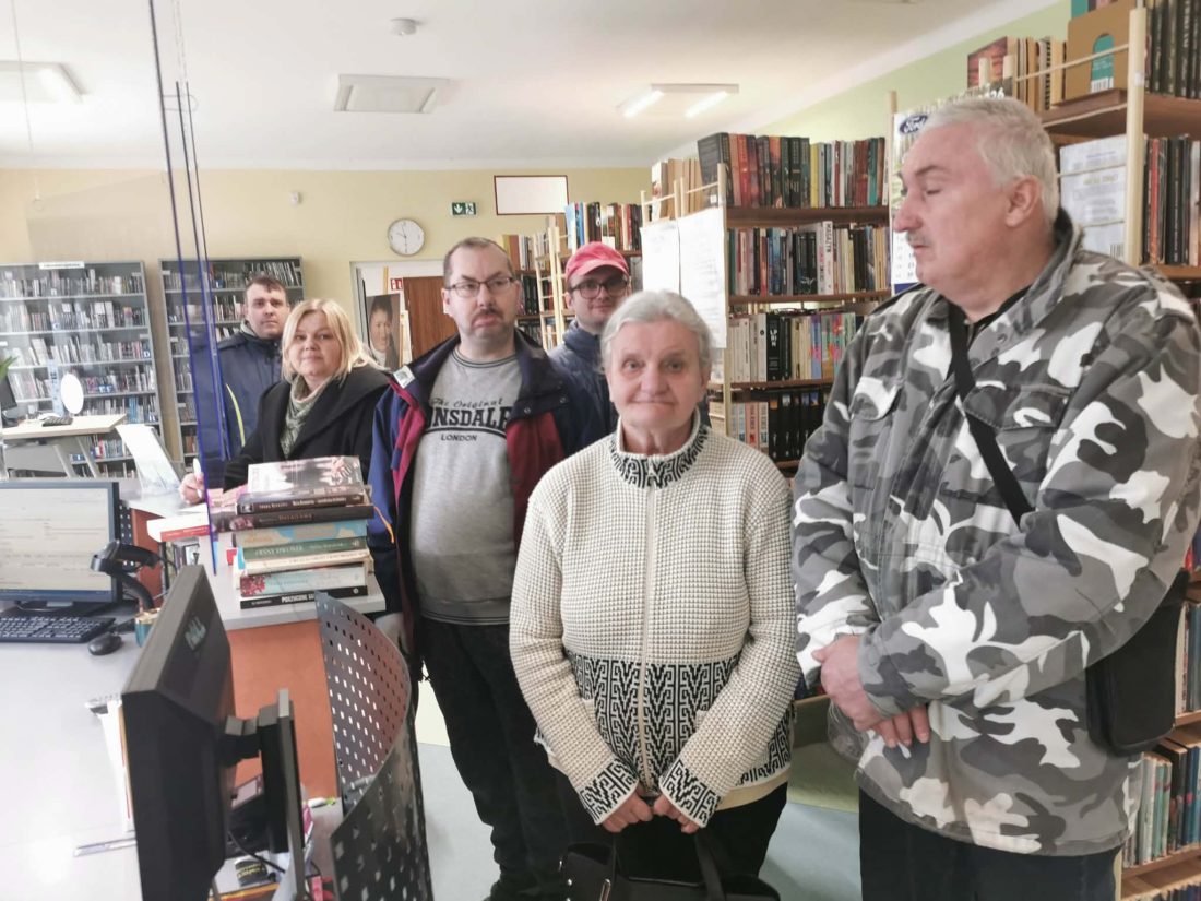 W dniu 15.04.2026r. naszą bibliotekę odwiedzili podopieczni Warsztatów Terapii Zajęciowej „Kościuszkowcy” przy Stowarzyszeniu Rodzin i Przyjaciół Osób Niepełnosprawnych w Skarżysku-Kamiennej wraz z opiekunem p. Moniką Kiljan. W czasie wizyty słuchacze dowiedzieli się, w jaki sposób można zapisać się do biblioteki i stać się jej czytelnikiem. Zapoznali się również z księgozbiorem Wypożyczalni dla dorosłych oraz Oddziałem książek audio. Na prośbę opiekuna bibliotekarz pokazał, jak korzystać z terminala bibliotecznego i wyszukiwać w systemie odpowiednie książki.